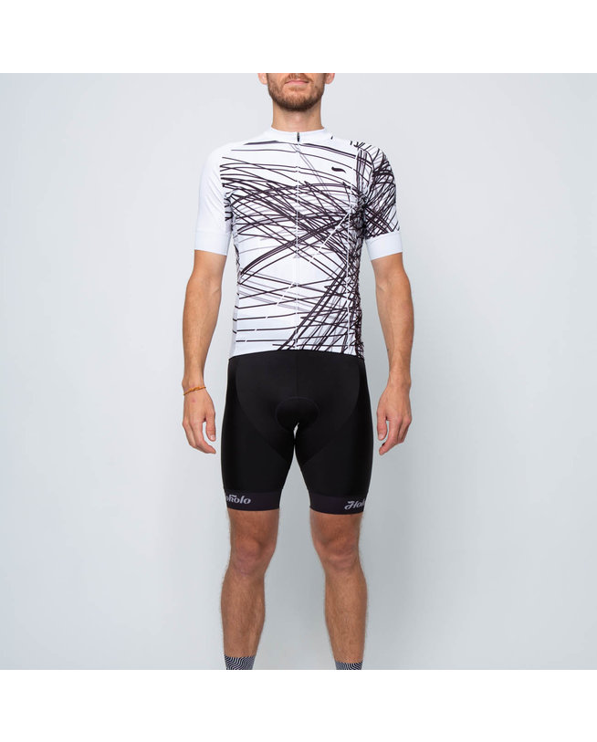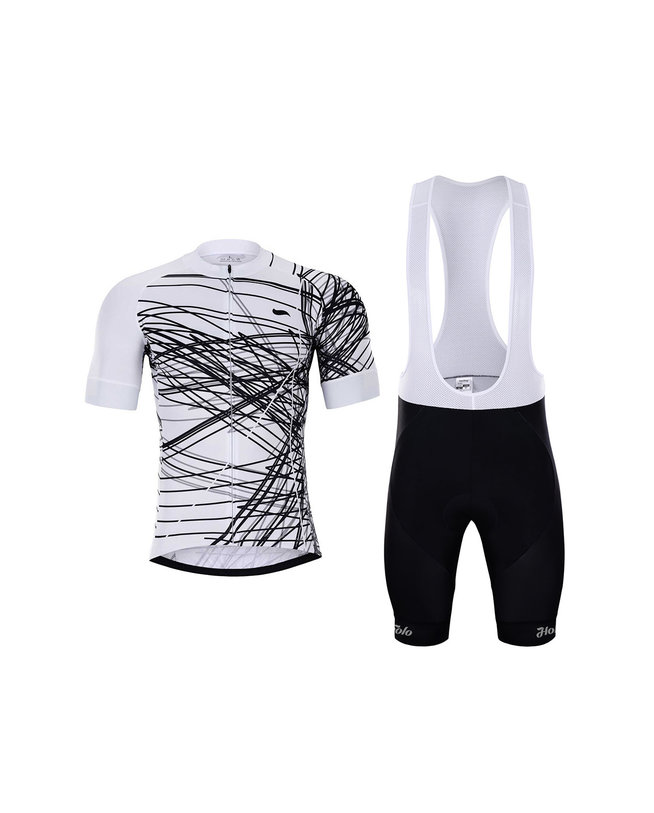 Kolesarski dres kratek rokav in kratke hlače HOLOKOLO CLASH bela/črna