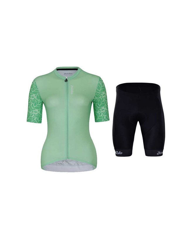 Kolesarski dres kratek rokav in kratke hlače HOLOKOLO FRESH ELITE LADY zelena/črna