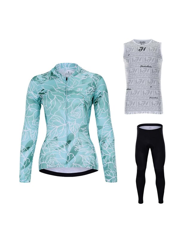 Dolg poletni set iz delavnice HOLOKOLO za popolno zaščito pred soncem in primeren tudi za hladnejše poletne večere. Dres je izdelan iz prijetnega, tesno prilegajočega se materiala, ki odlično odvaja znoj in ga po zaslugi silikonskega roba popolnoma drži na mestu, tudi med vožnjo. Lahek in hitro sušljiv material hlač zagotavlja njihovo funkcionalnost, udoben gelni vložek pa odvaja znoj in preprečuje trenje. Osnovna majica HOLOKOLO brez rokavov, narejena iz dihajoče in hitro sušeče tkanine. Zahvaljujoč vsestranski podporni obrabi in zelo učinkovitemu odvajanju znoja iz telesa je majica zasnovana tako, da pomaga uravnavati temperaturo in izboljšati udobje vožnje tudi v zelo vročem vremenu.