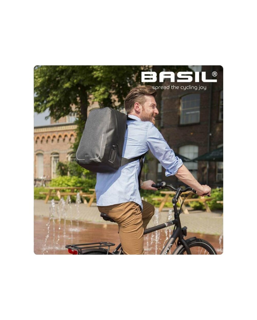 Nahrbtnik Basil Urban Dry je praktičen in vodoodporen nahrbtnik. To je idealna izbira za kolesarjenje v službo, šport ali nakupovanje. Posebej praktično pri tem nahrbtniku je, da ga lahko nosite na hrbtu ali na prtljažniku. To lahko storite zelo preprosto s sistemom Hook-On - na nosilcu sta dve kljuki, ki ju preprosto pritrdite. Primeren je tudi za električna kolesa.