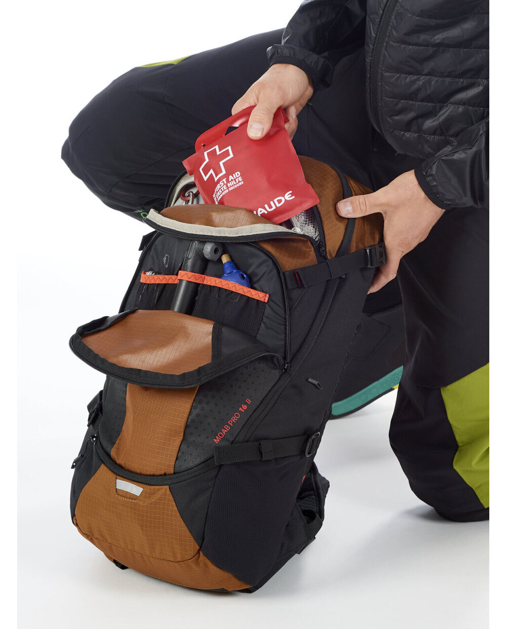 - Veliki sprednji predal ima številna orodja za razporeditev, notranje mrežni žep, drugi žepi mrežastega žepa so nameščeni na straneh, na desnem ledvenem krilu