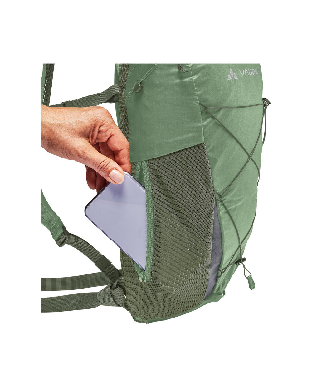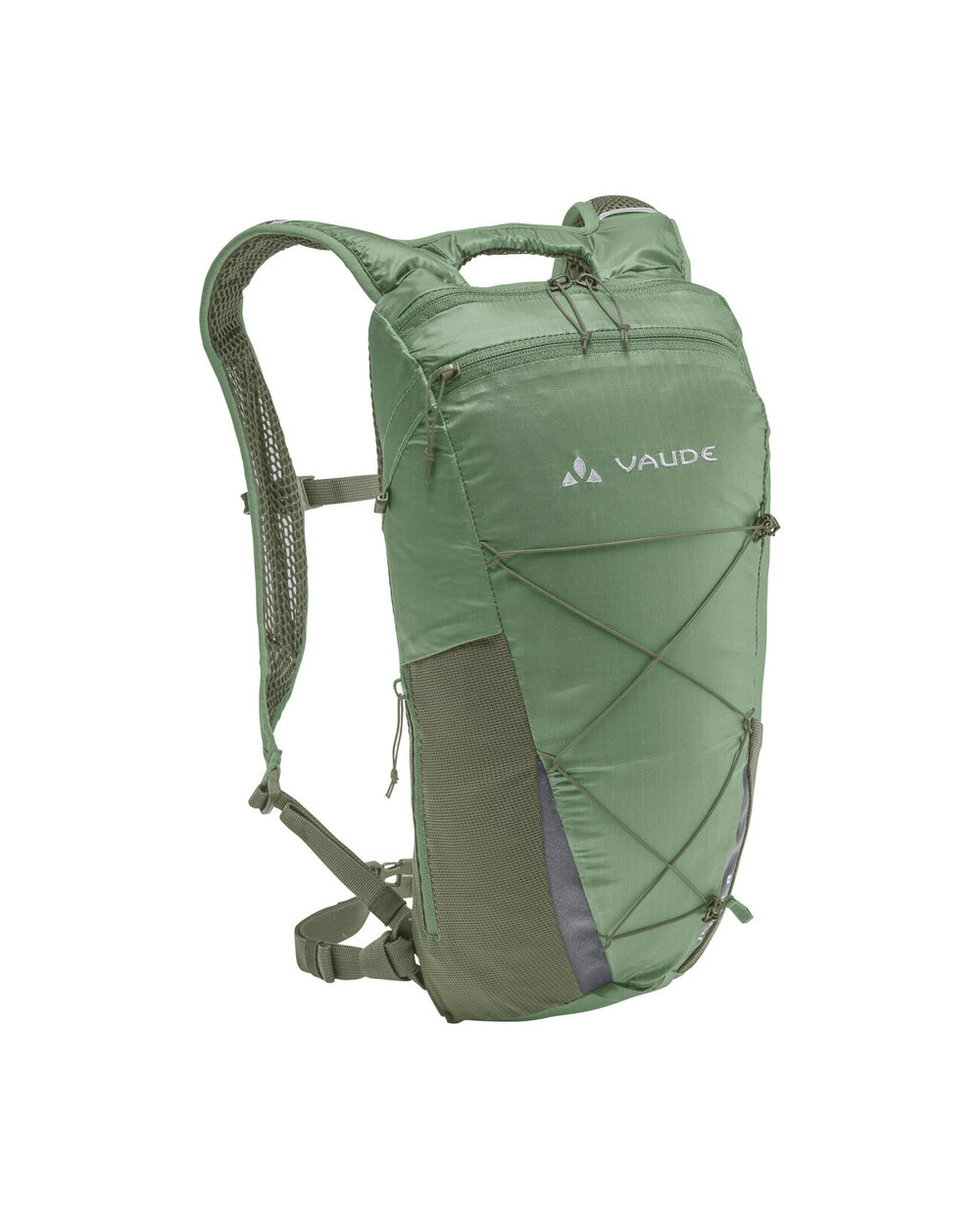 - sprednji in stranski žep z zadrgo, sprednji vezalki, odsevni elementi, vlažilni sistem sistema, trak za prsni koš s sponko, integriran dežni plašč