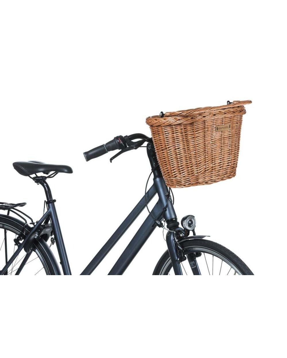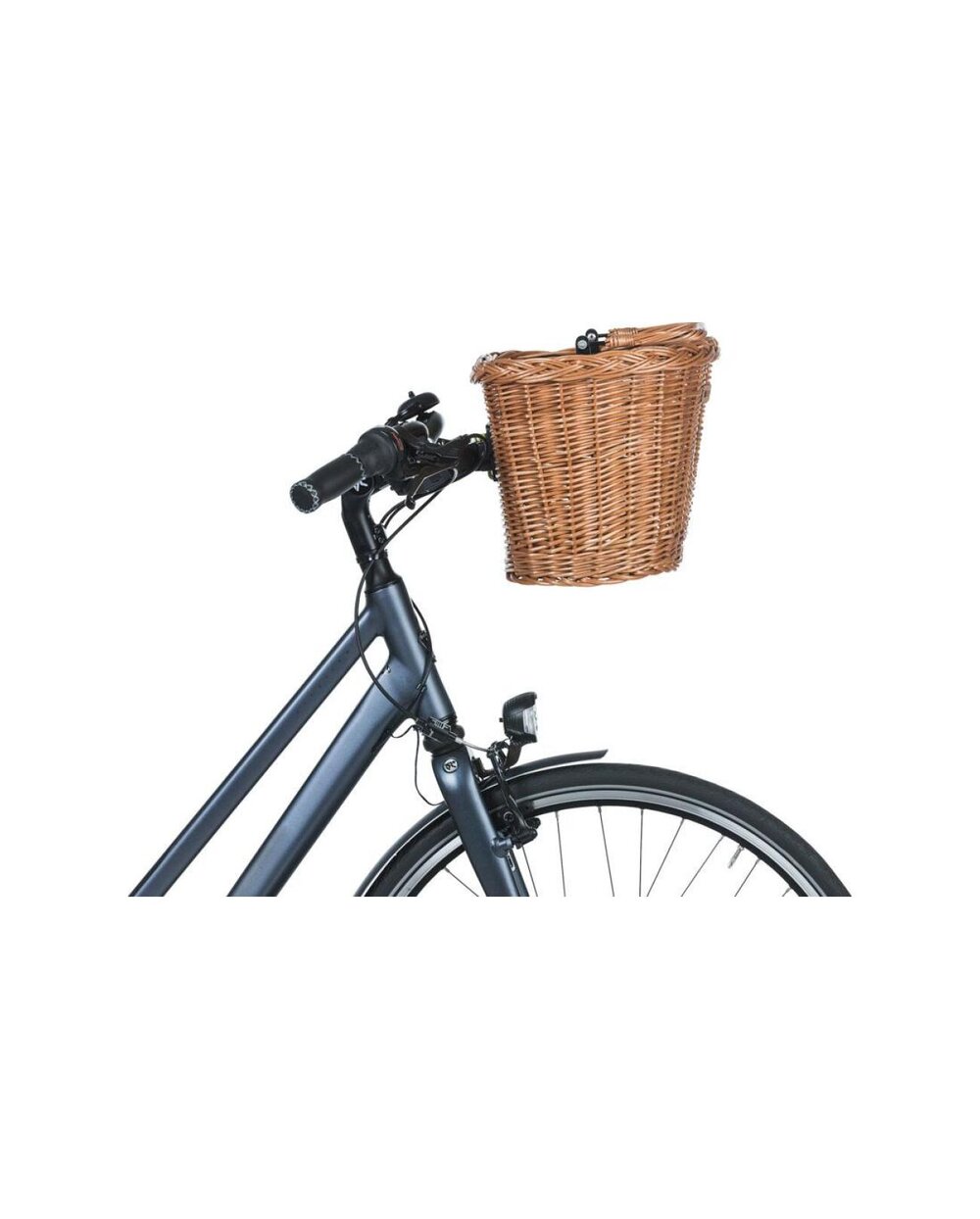 Klasična zasnova košare za kolo, ki jo je mogoče enostavno pritrditi na sprednji del kolesa.