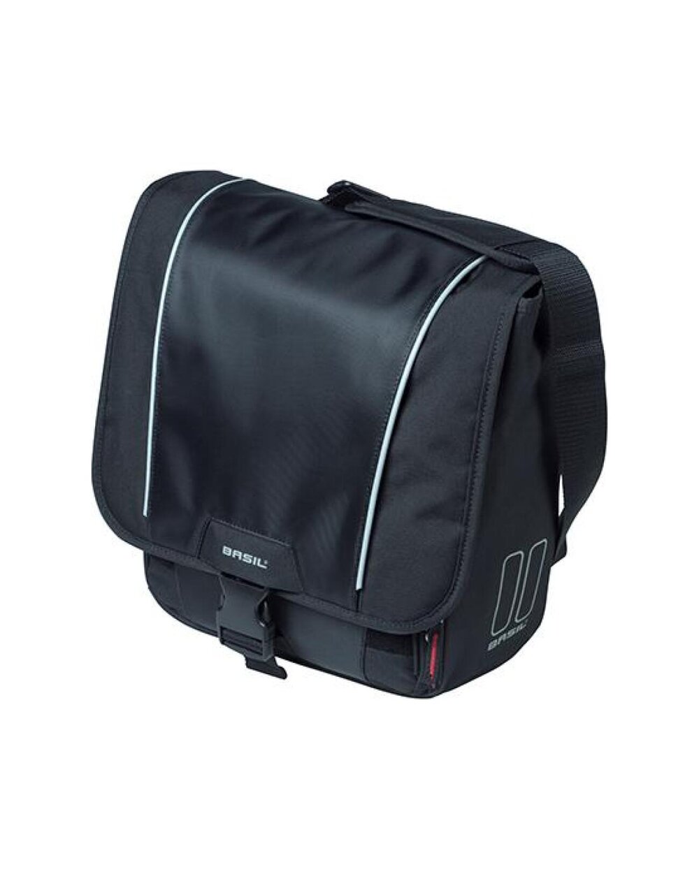 Torba Basil Sport Design Commuter Bag je praktična izbira za zaposlene kolesarje. Enostavno jo pritrdite na zadnji nosilec kolesa, zaradi naramnice pa je kot torba, ki jo lahko vzamete s seboj, saj lahko najnujnejše stvari vzamete s seboj, kamor koli greste. Ta elegantna torba je izdelana iz vodoodpornega poliestra, ki zagotavlja, da vaše dragocenosti ostanejo suhe in v odličnem stanju ne glede na vreme. Ima glavni predal za večje predmete in več manjših predalčkov za manjše predmete, tako da bo vse imelo svoje mesto. S skupno prostornino 18 litrov vam nikoli več ne bo primanjkovalo prostora. S praktičnimi dodatki, kot je mehko oblazinjenje, ki zagotavlja, da so predmeti, kot so prenosni računalniki in druga tehnična oprema, med prevozom dobro zaščiteni. Poleg naramnice je torba opremljena z udobnim ročajem, ki vam omogoča popoln nadzor nad načinom prenašanja. Omogoča tudi enostavno namestitev na nosilec.