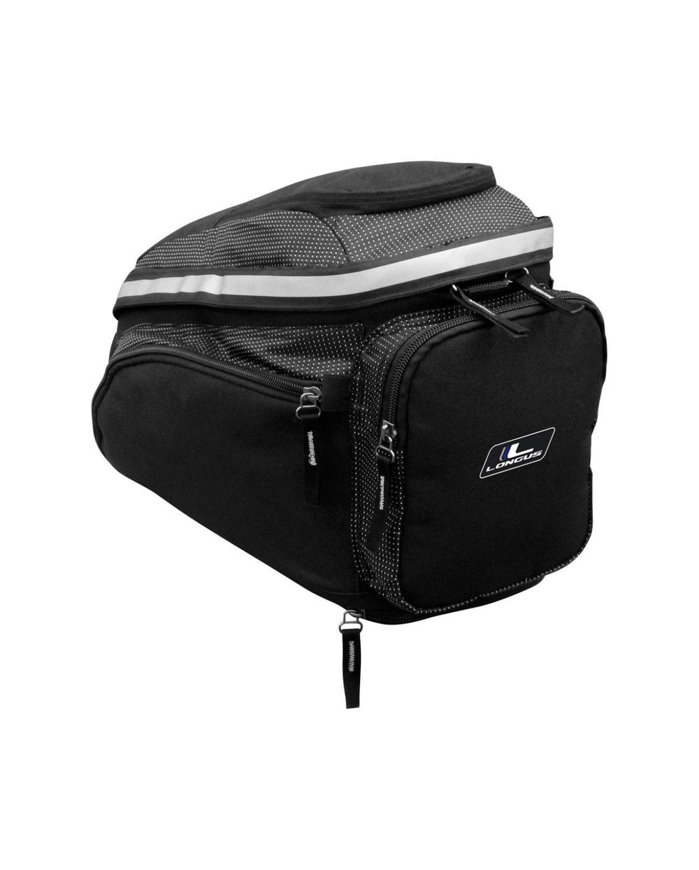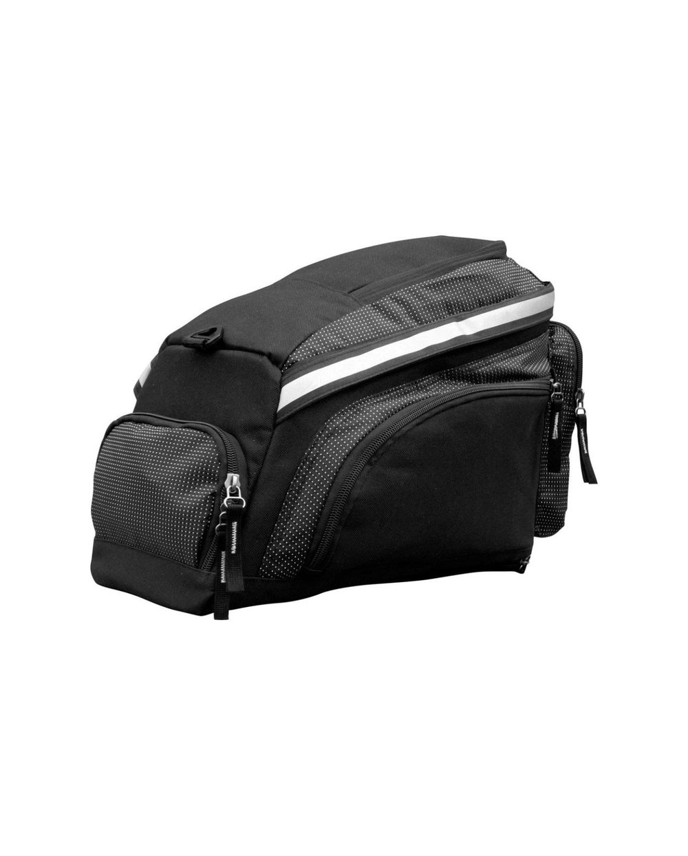 Prostoren nosilni žep z veliko stranskimi žepi in predali. Odprt zgornji pokrov omogoča priročen dostop do glavnega predala žepa in omogoča enostavno prenašanje tudi večjih predmetov. Notranji predal ima dva mrežna žepa, enega na stranski steni in drugega na zgornjem pokrovu. Na voljo je tudi zadnji žep za shranjevanje manjših predmetov ali dokumentov. Notranji predal je mehak in odličen za zaščito tudi krhkih predmetov, kot je fotoaparat. Žep z enostavnim dostopom na zgornjem pokrovu, stranski žepi in zadnji žep z obeskom za ključe se uporabljajo za shranjevanje manjših predmetov, do katerih lahko dostopate takoj, ne da bi morali iskati po glavnem predelu. Zaradi oznak na vodilih zadrge je pogosto odpiranje in zapiranje veliko lažje. Pritrditev torbe na nosilec je zavarovana s tremi dovolj dolgimi trakovi na velcro. Odsevni trak, ki poteka po zgornjem robu, poveča tudi stransko vidljivost v slabših svetlobnih razmerah. Torbica je izdelana iz trpežnega in vzdržljivega poliestra 600D, ki zagotavlja dolgo življenjsko dobo tudi ob pogosti uporabi. Torbici je priložena prevleka za dež v neonsko rumeni barvi z odsevnim trakom.