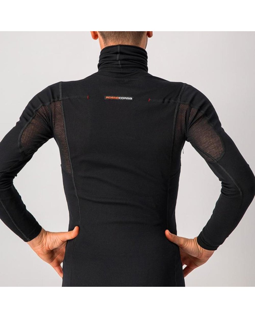 Spodnji sloj iz našega najtoplejšega materiala, ki ga uporabljamo za izdelavo spodnjega perila. Ima izjemno visok ovratnik, ki ga lahko potegnete navzgor in uporabite kot zaščito za usta ali obraz.