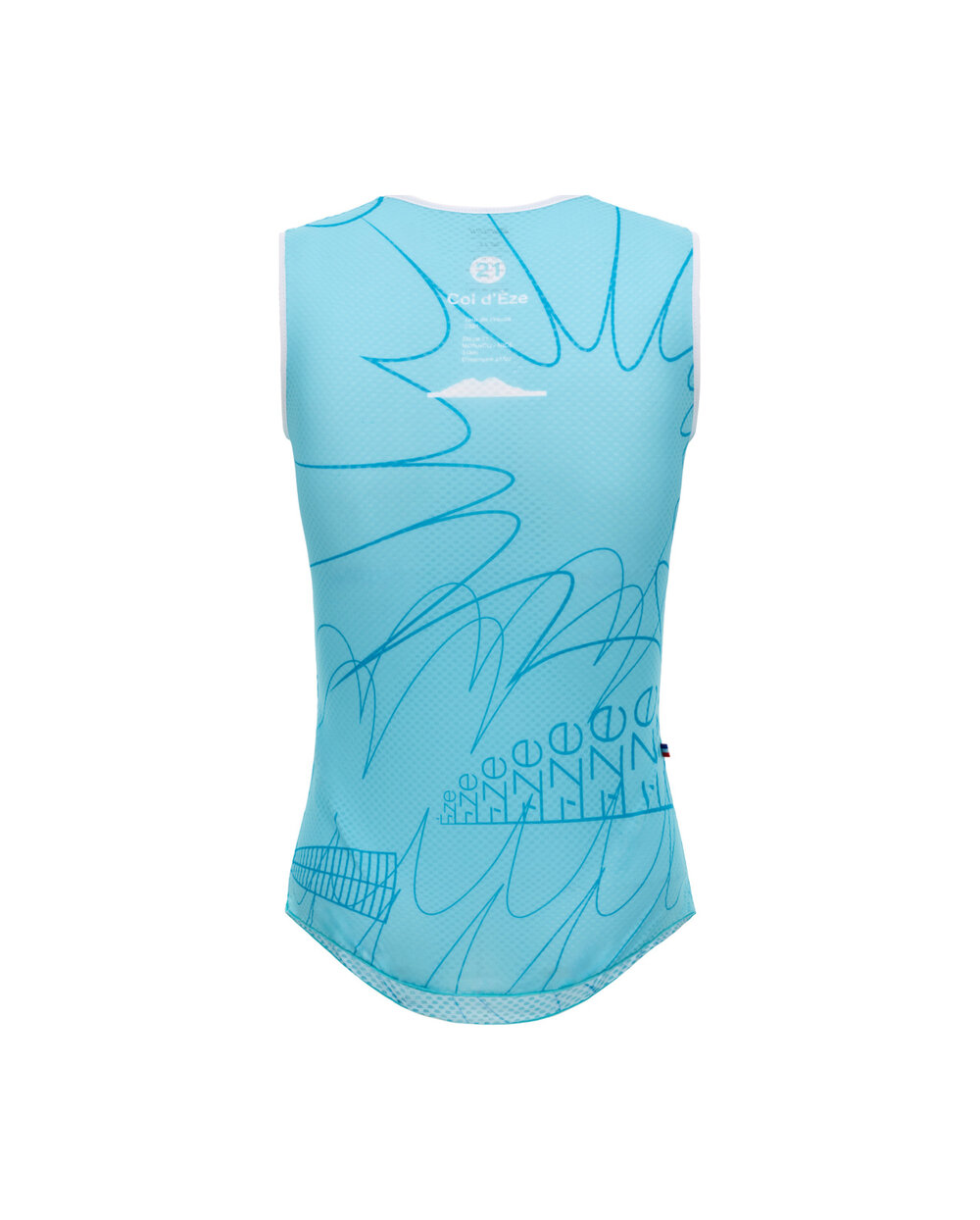 Brezrokavnik s posebnim dizajnom, posvečenim čudovitemu mestu Nica, ki vključuje elemente, navdihnjene z Angleško promenado. Ustvarjena je tako, da zagotavlja popolno udobje zaradi prileganja, elastičnosti in lastnosti odvajanja vlage. Posebno podaljšan kroj zagotavlja vrhunsko zaščito, ne da bi pri nošenju pod dresom povzročal in nelagodje. Popolna dopolnitev kolesarskega kompleta iz Nice.