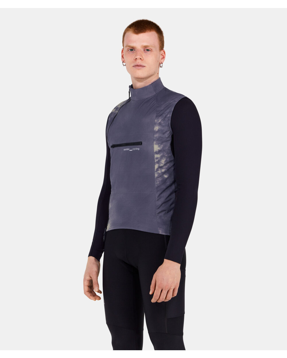 Santini Alpha Insulated je inovativen uniseks telovnik za zahtevne kolesarje, ki iščejo zanesljivo zaščito v prehodnem vremenu brez omejevanja svobode gibanja. Lahka, na veter odporna zunanja plast tkanine ščiti pred vetrom in mrazom, medtem ko notranja izolacija iz merino volne Polartec® Alpha™ ohranja toplotno udobje brez pregrevanja ali prekomerne mase.Na zadnji strani je plošča Polartec® Power Wool™, ki izboljša zračnost in hkrati ščiti najbolj izpostavljena področja. Trije zadnji žepi in četrti z zadrgo zagotavljajo dovolj prostora za hrano ali majhne predmete, sprednji prsni žep z zadrgo povečuje praktičnost. Dolga stranska zadrga poskrbi za enostavno obuvanje in hkrati boljšo stransko zaščito pred vetrom.Brezrokavnik ima lično zaključene izreze za roke brez šivov, kar poveča udobje in poudari minimalističen videz. Odsevni detajli in logotipi zagotavljajo boljšo vidljivost v slabih svetlobnih pogojih. Eleganten videz dopolnjuje abstrakten prehodni tisk, ki daje telovniku moderen značaj.Glavne prednosti: