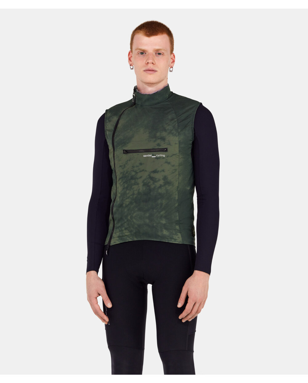 Santini Alpha Insulated je inovativen uniseks telovnik za zahtevne kolesarje, ki iščejo zanesljivo zaščito v prehodnem vremenu brez omejevanja svobode gibanja. Lahka, na veter odporna zunanja plast tkanine ščiti pred vetrom in mrazom, medtem ko notranja izolacija iz merino volne Polartec® Alpha™ ohranja toplotno udobje brez pregrevanja ali prekomerne mase.Na zadnji strani je plošča Polartec® Power Wool™, ki izboljša zračnost in hkrati ščiti najbolj izpostavljena področja. Trije zadnji žepi in četrti z zadrgo zagotavljajo dovolj prostora za hrano ali majhne predmete, sprednji prsni žep z zadrgo povečuje praktičnost. Dolga stranska zadrga poskrbi za enostavno obuvanje in hkrati boljšo stransko zaščito pred vetrom.Brezrokavnik ima lično zaključene izreze za roke brez šivov, kar poveča udobje in poudari minimalističen videz. Odsevni detajli in logotipi zagotavljajo boljšo vidljivost v slabih svetlobnih pogojih. Eleganten videz dopolnjuje abstrakten prehodni tisk, ki daje telovniku moderen značaj.Glavne prednosti: