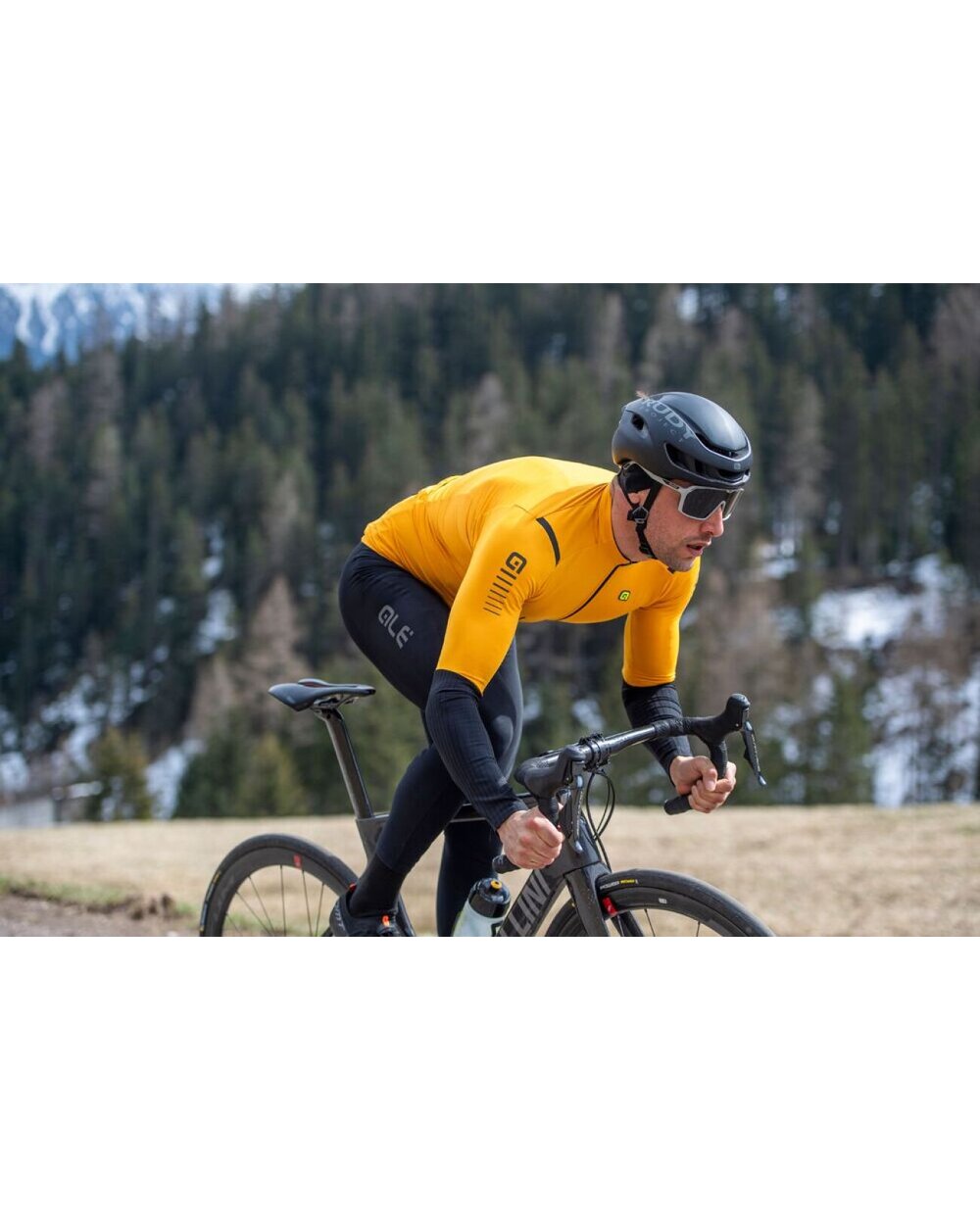 Kolesarski dres z dolgimi rokavi zimski Alé WARM RACE 2.0 R-EV1 rumena