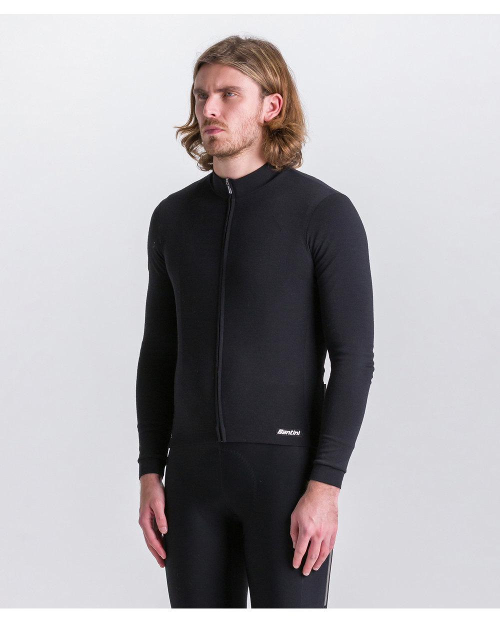 Kolesarski dres z dolgimi rokavi zimski Santini IMPETUS ZIP črna