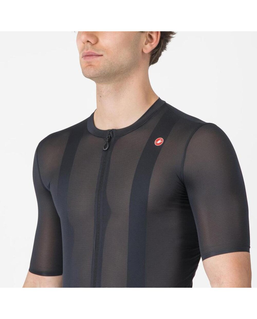 Z dresom Superleggera A/C je bil naš cilj narediti čim lažji in zračen, vendar brez žrtvovanja zaščite pred soncem in ohranitve praktičnih lastnosti, kot je žep za ključe z zadrgo. Material smo poimenovali Oltre, kar lahko prosto prevedemo kot »zadaj«, ta dres pa gre resnično »onstran« meja lastnosti navadnega jerseyja – horizontalne črte dajejo materialu odlično zračnost in elastičnost, hkrati pa nudijo oporo žepom. Ta dres ni samo funkcionalen, ampak tudi izgleda dobro. Za čist dizajn smo zalepili konce rokavov in pas. Zadnji žepi se popolnoma prilegajo hrbtu in ne štrlijo. Ti detajli dajejo dresu čisto in prefinjeno estetiko.