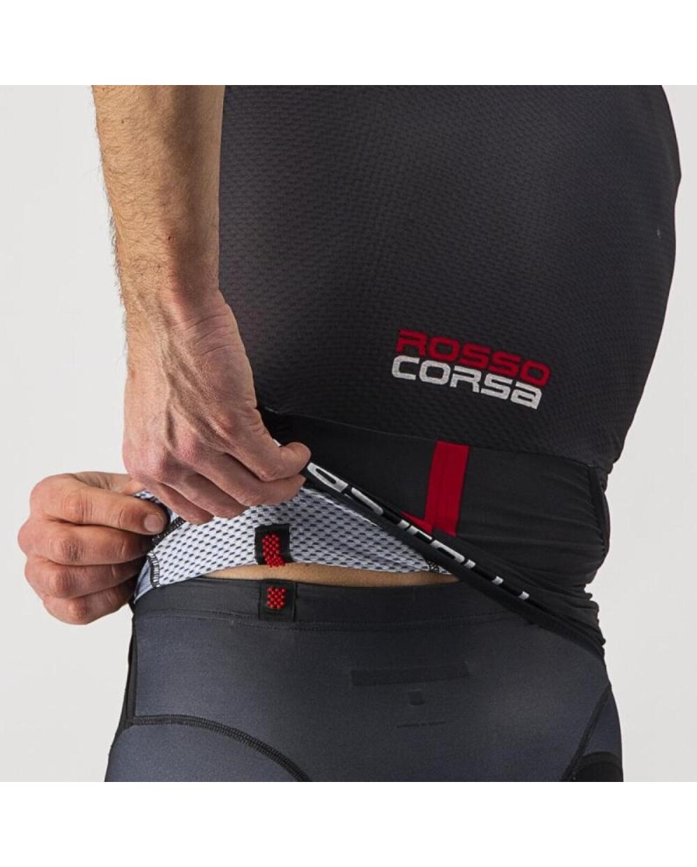 Upoštevajte tudi premišljene podrobnosti: velikodušna dva CASTELLIjeva žepa, ki ležita plosko, a vanj lahko spravite tudi veliko opreme in prehrane. CASTELLIjev sistem SnapLock, ki povezuje majico in hlače ter preprečuje, da bi se majica med plavanjem ali kolesarjenjem dvignila.