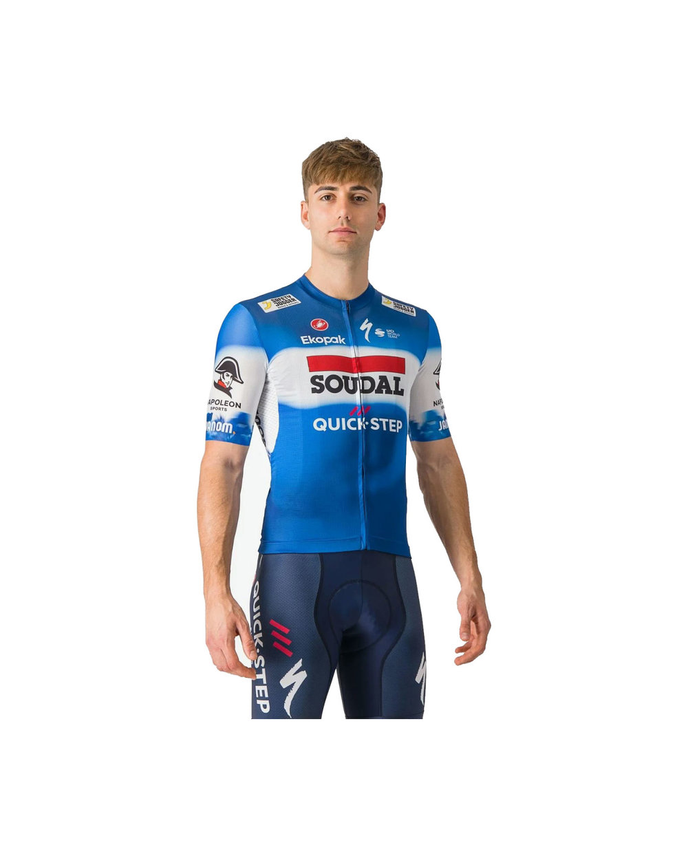 Kolesarska majica Soudal Quick-Step bolj sproščenega kroja. Raztegljiva tkanina Strada micromesh s prezračevanjem na sprednji strani, hrbtu in rokavih za odlično prileganje in uravnavanje vlage. Neobdelano izrezani zaključki rokavov.