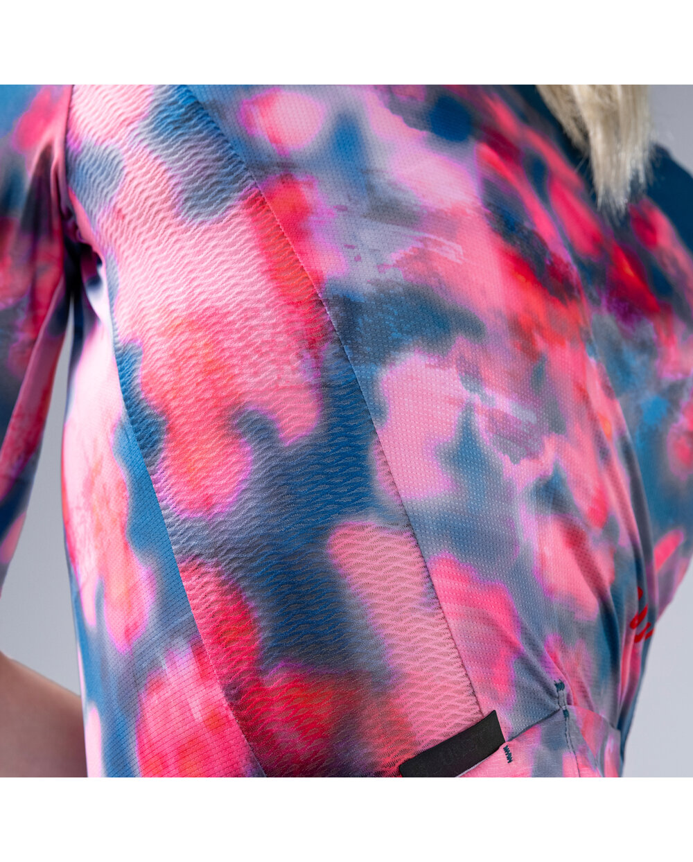 Sprednji del uporablja enak mikroperforiran material kot zadnji za spodbujanje neprekinjenega pretoka zraka in pomaga ohranjati telo sveže in suho. Čist kroj, brezšivni rokavi odpravljajo trenje in se natančno prilegajo, povečujejo stabilnost in aerodinamiko brez žrtvovanja udobja.