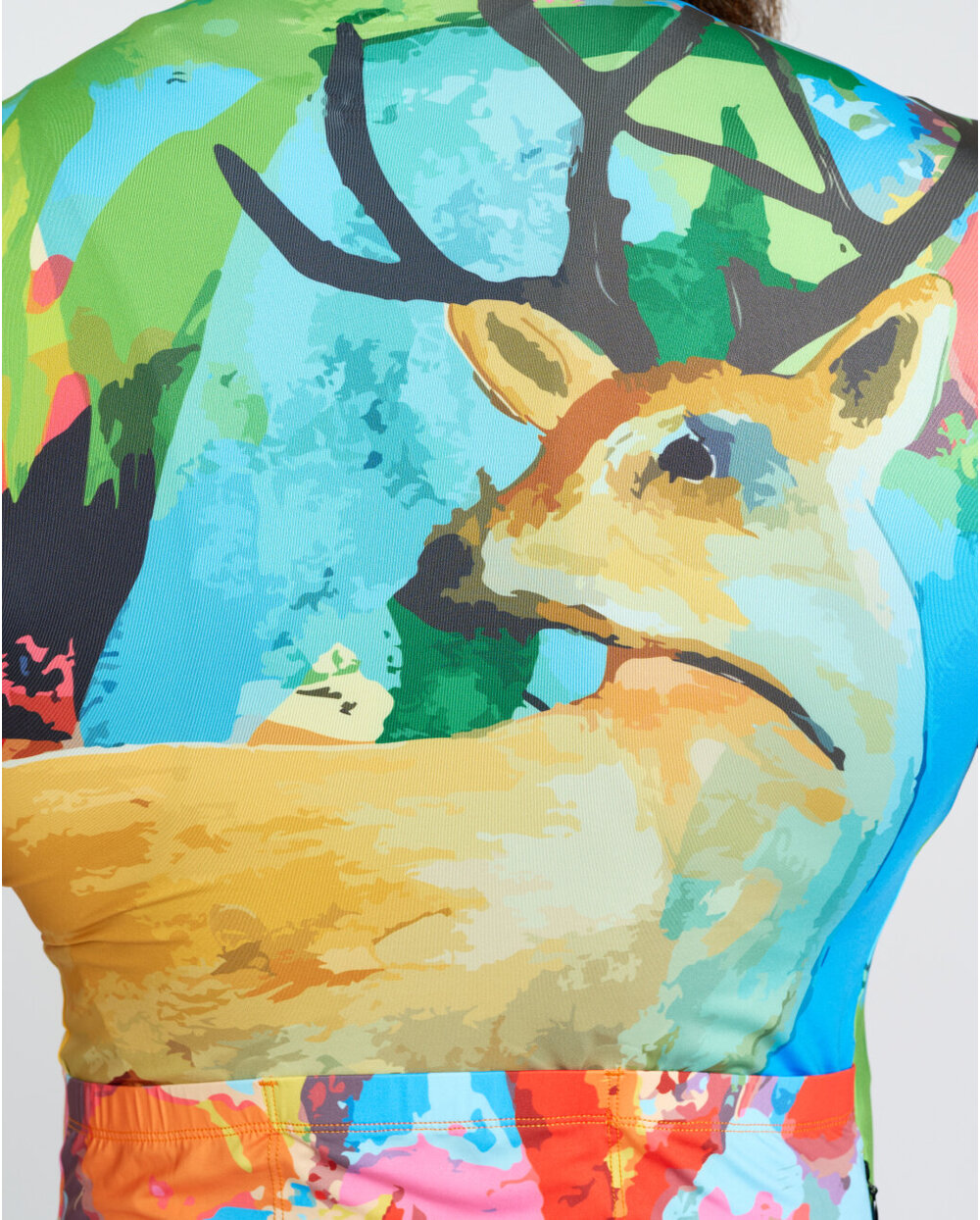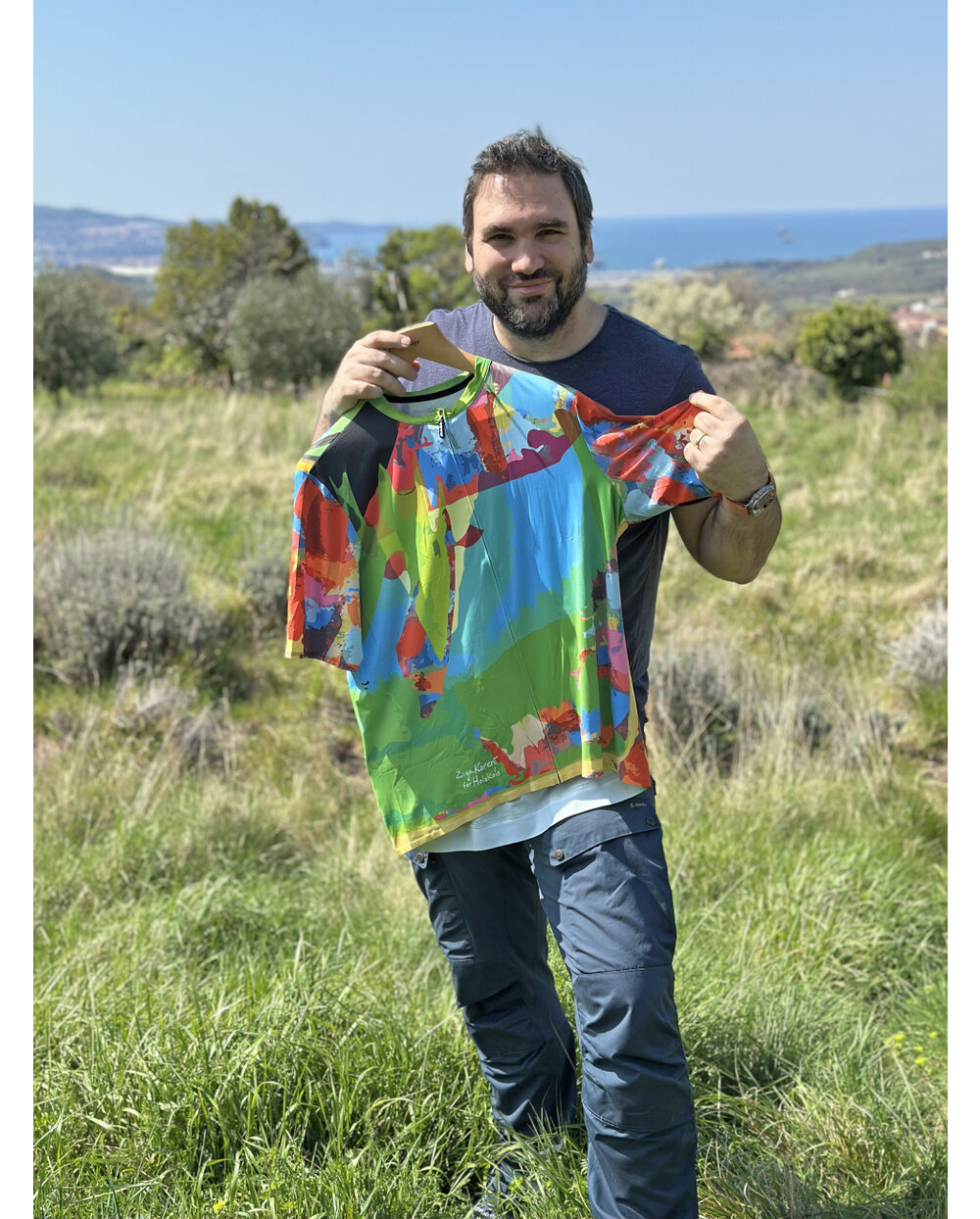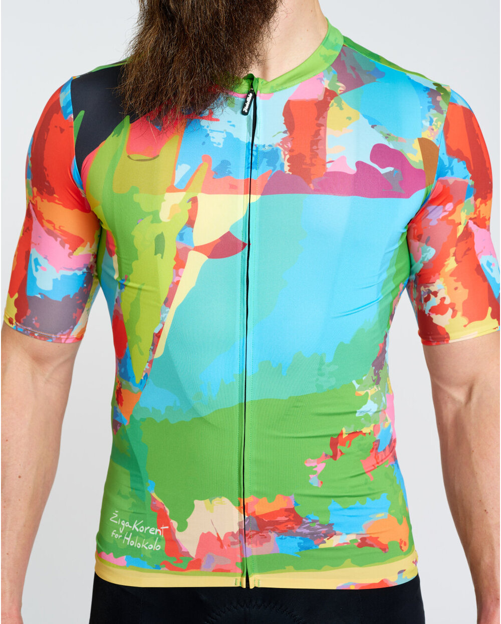 Material je odličen, kroj je čudovit na telesu. Odvaja znoj in se lepo prilega telesu. Odlična izbira za pomlad-poletje. Nič ne štrli, se ne guba in se lepo prilega okoli vratu, ko ga vklopite. Rokavi ravno prav dolgi, nobenih kratkih, ki se zavihajo ali so ohlapni okoli rok. Prav tako trdno drži na hrbtu. Klasični 3+ majhni žepi z zadrgo. So čudovito močni, a hkrati prožni. Vzorec je tudi zaščitni element, saj vas v tem nihče ne bo nikoli zgrešil na cesti, kolesarski stezi ali gozdni poti. Ko se oblečeš, se počutiš, kot da nosiš umetniško galerijo. Izvirni ste, brez dolgočasne enobarvnosti ali črt, ki so v kolesarstvu tako stalnica in gotovost. Jasno je, da se je oblikovalec zelo potrudil in pokazal svoje sposobnosti.