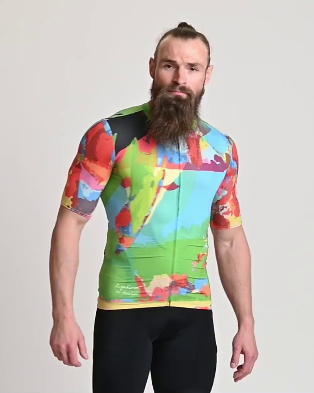 Materiál je super, střih krásně na tělo. Odvede pot, hezky sedí na těle. Na jaro-léto super volba. Nikde nic neodstává, neshrnuje se, při zapnutí je hezky u krku. Rukávky akorát dlouhé, žádné krátké shrnující se nebo volné kolem rukou. Na zádech taky drží pevně. Kapsy klasika 3+ malá na zip. Jsou krásně pevné ale zároveň pružné. Ten vzor je zároveň ochranný prvek, protože v tomhle vás na silnici, cyklostezce ani na lesní cestě nikdo nikdy nepřehlédne. Při oblečení si přijdete, že jedete s galerií umění na sobě. Jste originální, žádná nudná monochromatičnost nebo proužky, které jsou takovou stálicí a jistotou u cyklistiky. Je tu vidět, že designér se na tom vyřádil a projevil svůj um.