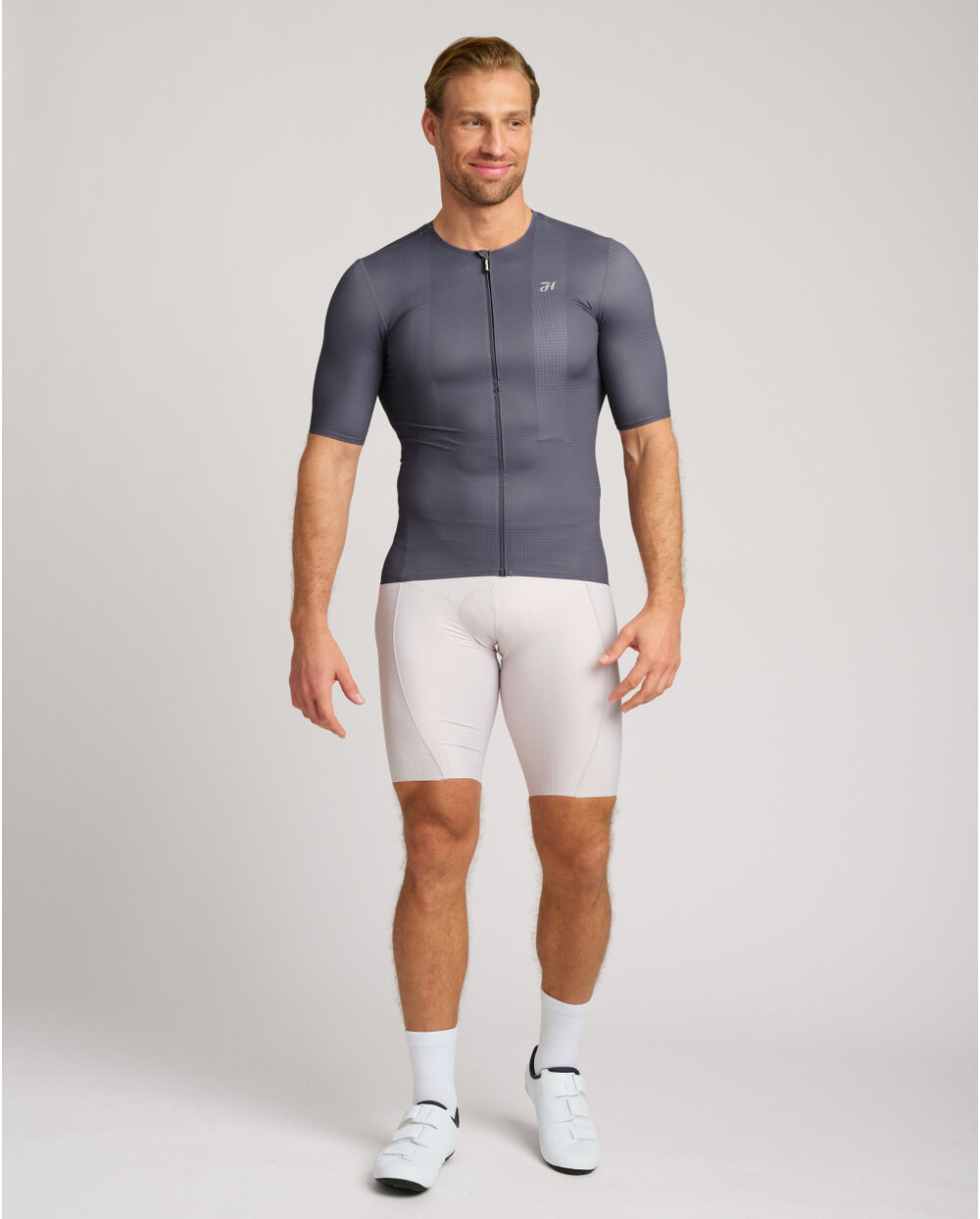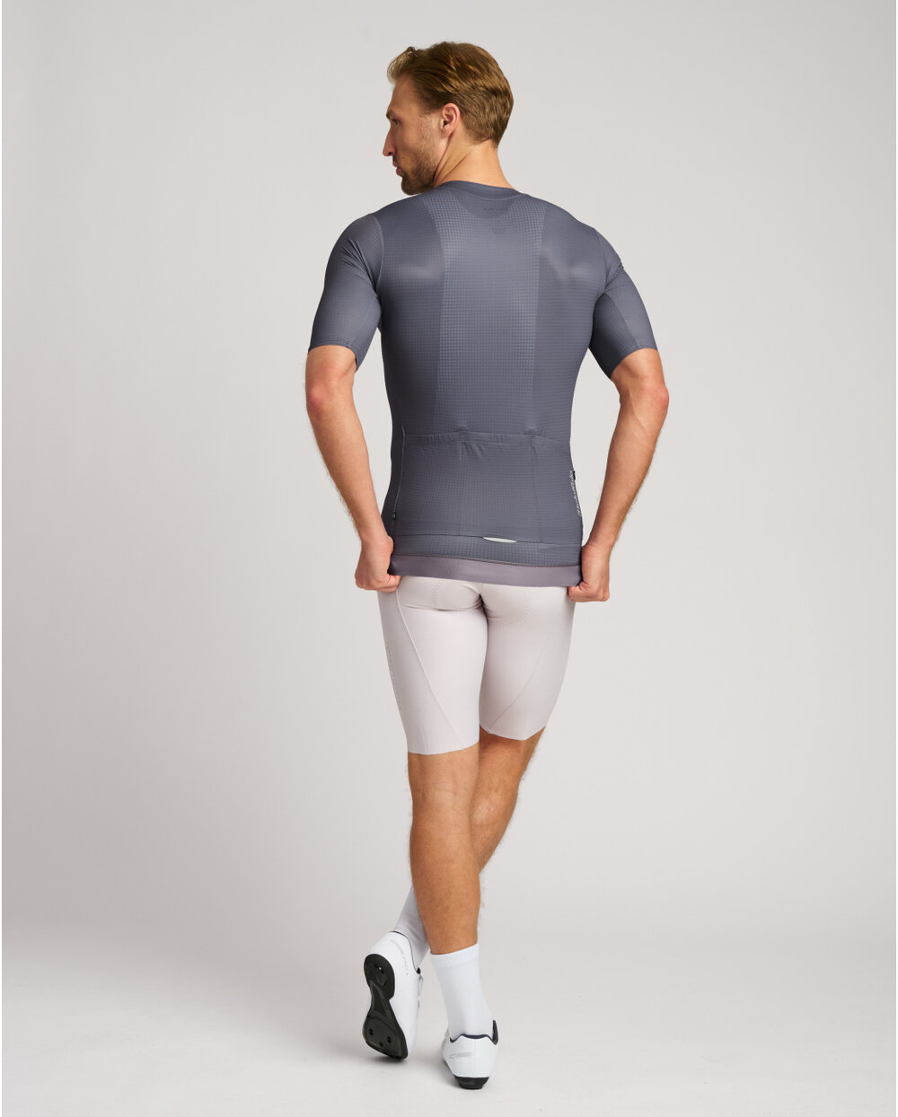 Zahvaljujoč naši novi tkanini z zračno teksturo učinkovito odvaja vlago tudi pri visoki zmogljivosti. Prilagodi se postavi, trdno ohranja obliko in odpravlja pomanjkljivosti. Ima izboljšan kroj ovratnika in zadrgo z zaščito vratu, tri zadnje žepe s skritim žepom na zadrgo in nedrseč zaključek na zadnji strani dresa. Minimalistična oblika poudarja brezčasnost dresa.