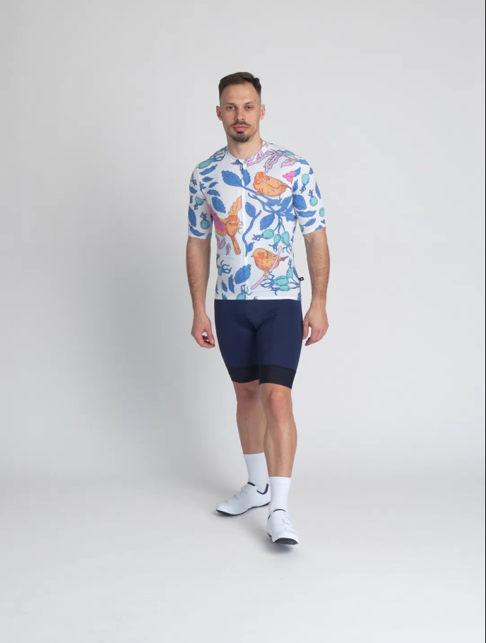 Popestrite vsakodnevno vožnjo z izvirno ilustracijo. Ta moška poletna kolesarska majica vas bo spravila v dobro voljo, da boste popolnoma uživali v dnevu na kolesu.