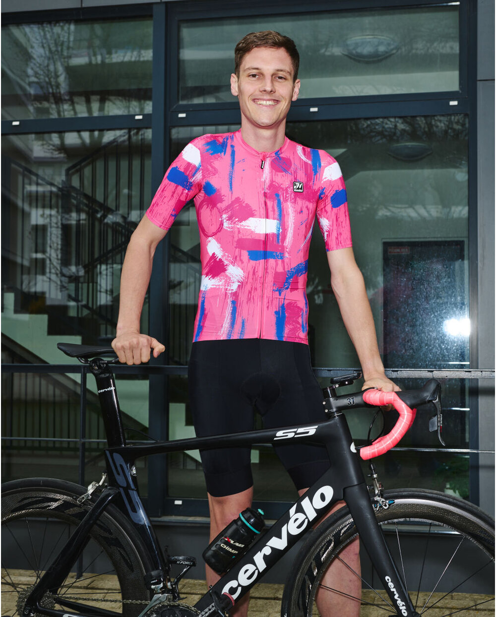 Kolesarski dres s kratkimi rokavi HOLOKOLO STROKES rožnata/modra