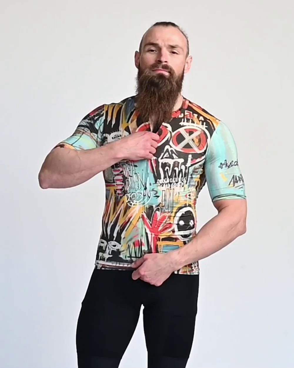 »Moja umetnost je nor izraz, ki dodaja moč ne glede na to, kaj voziš. Drzne barve in nore kompozicije se odlično podajo k modernim športnim oblačilom. Zahvaljujoč njemu lahko zagotovo izstopate od drugih kolesarjev.« - pravi Kamil Jaczynski