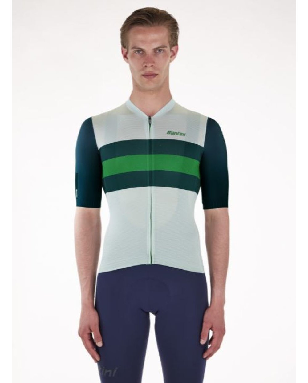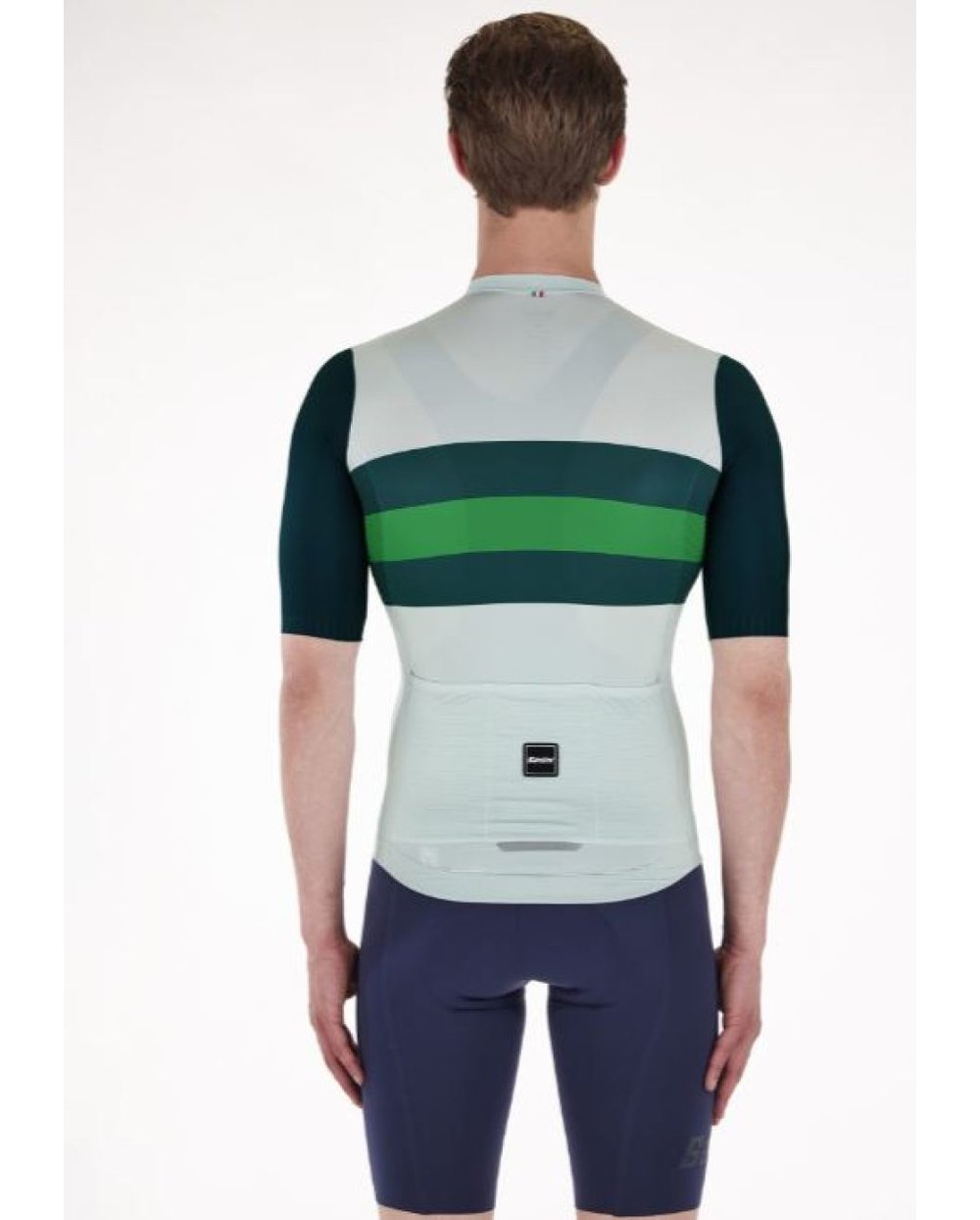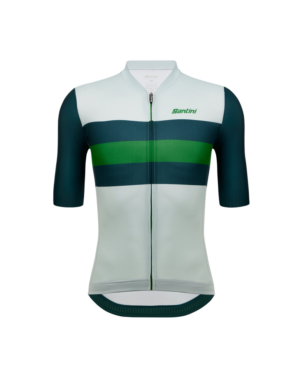 Dres Santini Eco Sleek New Bengal je idealna izbira za dirkaško sezono. Ta aerodinamična majica je izdelana iz okolju prijaznih recikliranih materialov, pridobljenih iz PET in odpadne preje, kar prispeva k bolj trajnostni prihodnosti. Majica zagotavlja svež občutek na koži in jo nosijo profesionalci. Eleganten kroj s surovo krojenimi rokavi in oblikovanimi silikonskimi rokavi na manšetah zagotavlja boljšo aerodinamično zmogljivost. Dolga pokrita zadrga zagotavlja termoregulacijo v najbolj vročih dneh. Na hrbtni strani boste našli trojni žep za shranjevanje najnujnejših stvari.