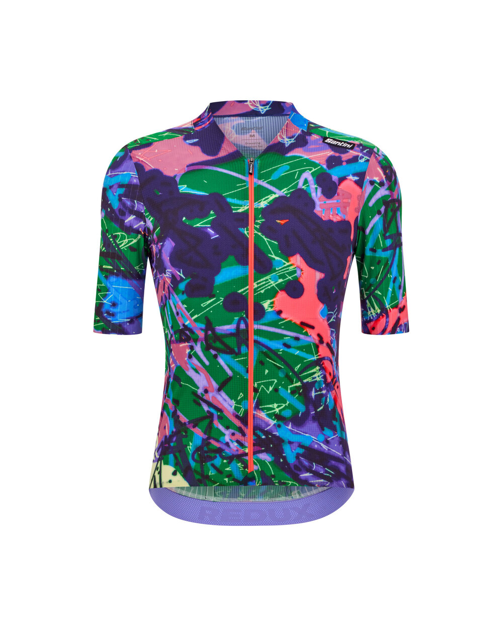 Kolesarski dres Santini Redux je mojstrovina aerodinamične učinkovitosti in oblikovanja. Ta majica je izdelana iz različnih panelov členaste tkanine, zato ni le lahka, ampak ima tudi hitro sušeče lastnosti in zaščito pred UV-žarki.