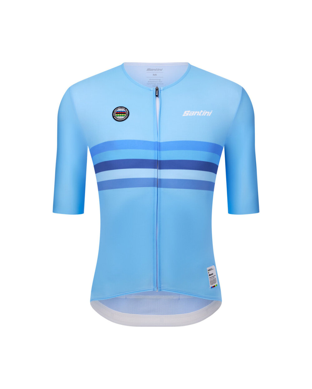 Notranji elastični pas ohranja dres varno na mestu, medtem ko nizki ovratnik z notranjim robom in pokrito zadrgo v celotni dolžini še poveča udobje. Odsevna siva detajla na zadnji strani poveča vidnost v pogojih slabe svetlobe, kar izboljšuje varnost v cestnem prometu. Poleg tega njegovo certifikat UPF30+ zagotavlja učinkovito zaščito UV, zaradi česar je ta dres kot nalašč za sončne izzive. Oblačilo, ki združuje tehnologijo, slog in poklon zgodovini kolesarjenja, kot nalašč za tiste, ki želijo izstopati z eleganco in zmogljivostjo.