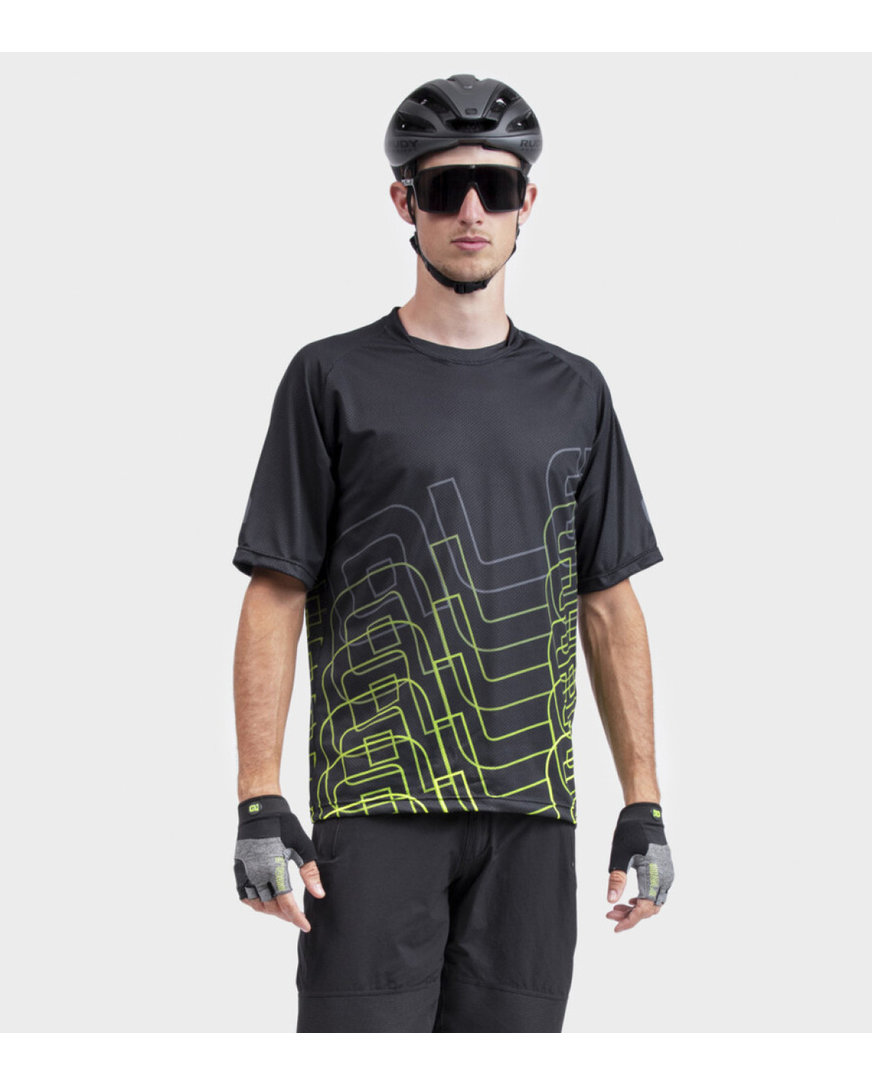 Dres, zasnovan za gorsko kolesarjenje, omogoča gibanje brez omejitev. To majico lahko nosite čez ščitnike. Lahka in zračna majica je ukrojena tako, da je idealna za gorsko kolesarjenje in kolesarjenje v spustu.