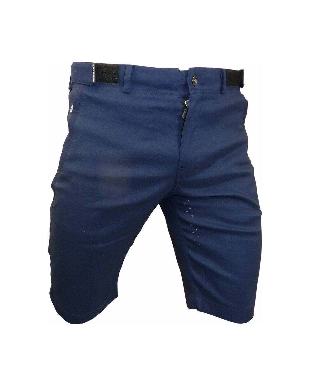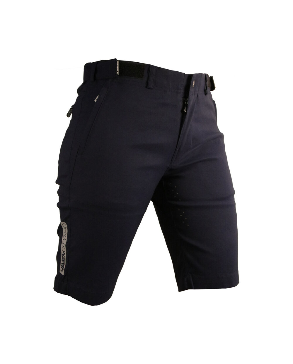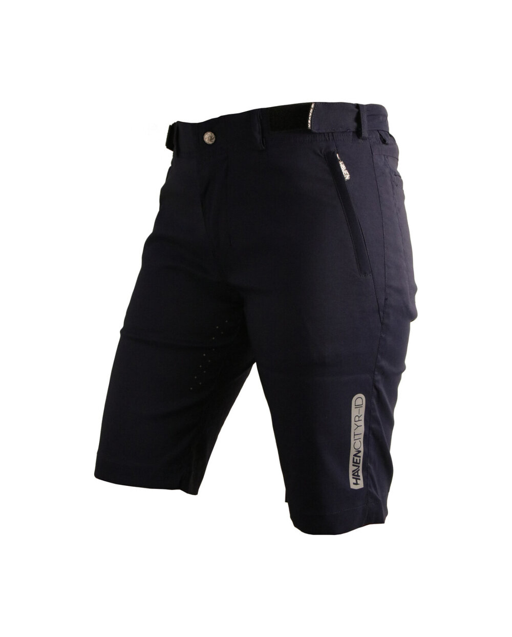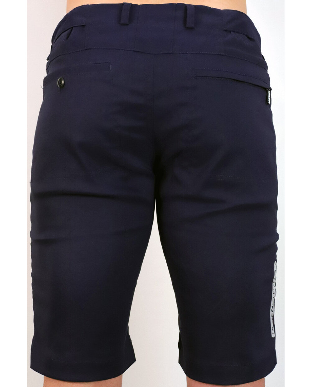 Kratke hlače iz posebnega materiala najlon-likra (odpornega na vodo in umazanijo) v temno modri mat barvi z odsevnimi elementi. Model, zasnovan za mesto, s čistim dizajnom, materialom in krojem. Dobavljeno brez notranje kolesarske podloge... to lahko dokupite