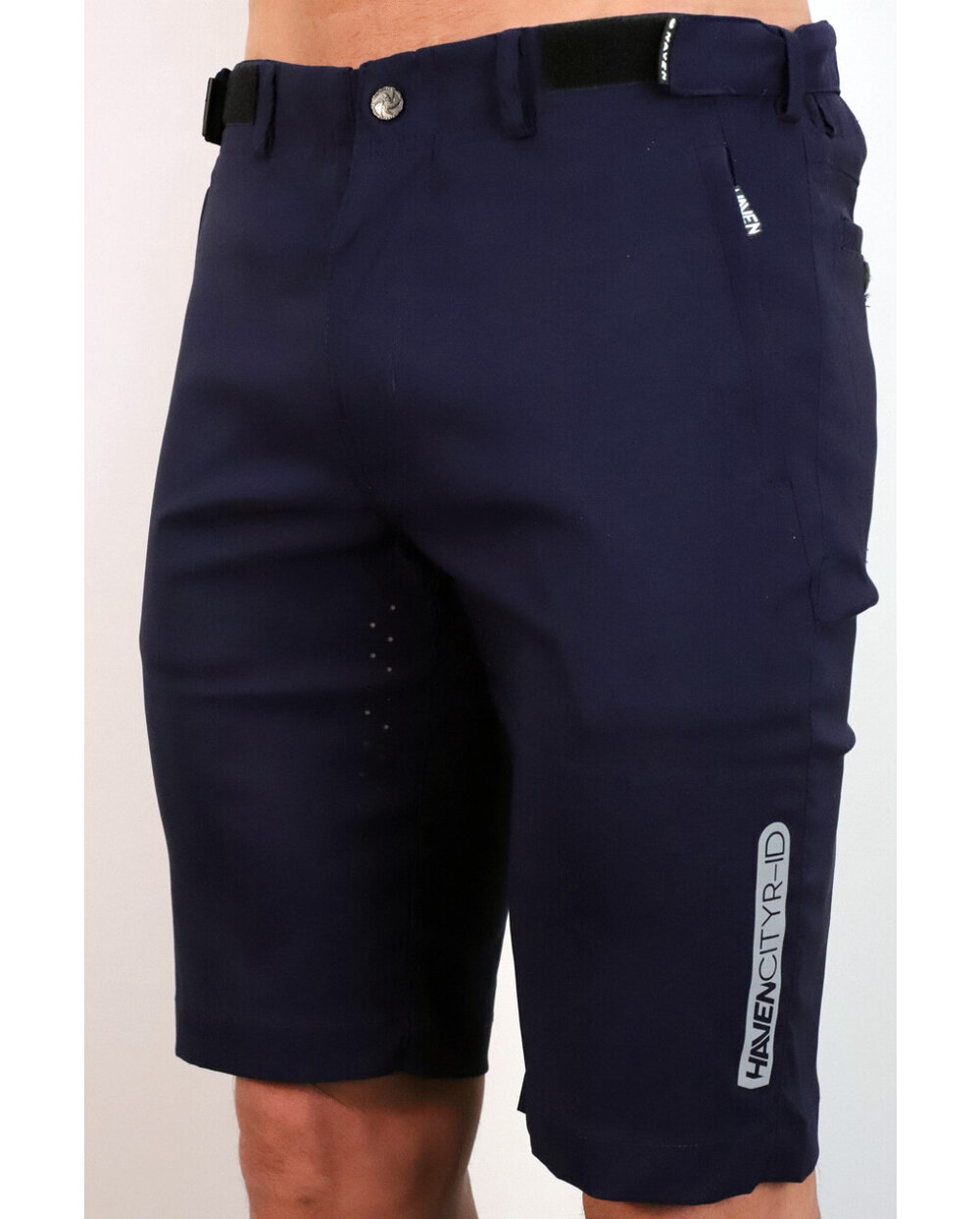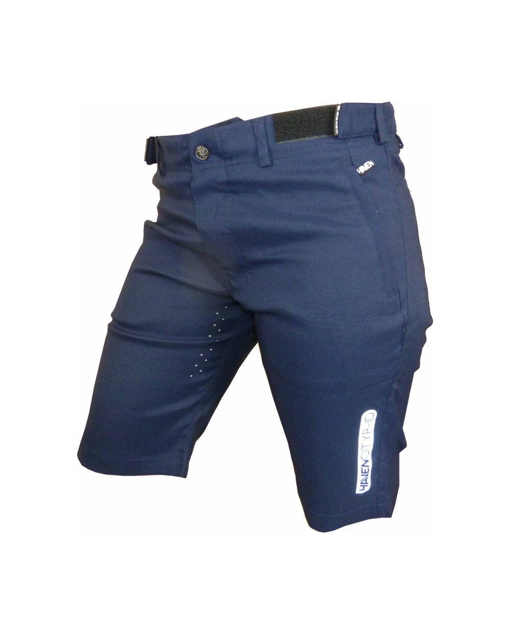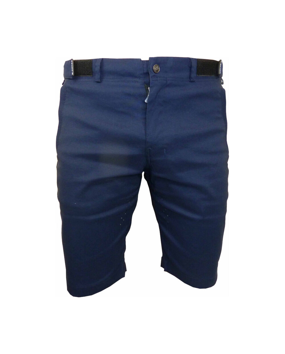 Kratke hlače iz posebnega materiala najlon-likra (odpornega na vodo in umazanijo) v temno modri mat barvi z odsevnimi elementi. Model, zasnovan za mesto, s čistim dizajnom, materialom in krojem. Dobavljeno brez notranje kolesarske podloge... to lahko dokupite