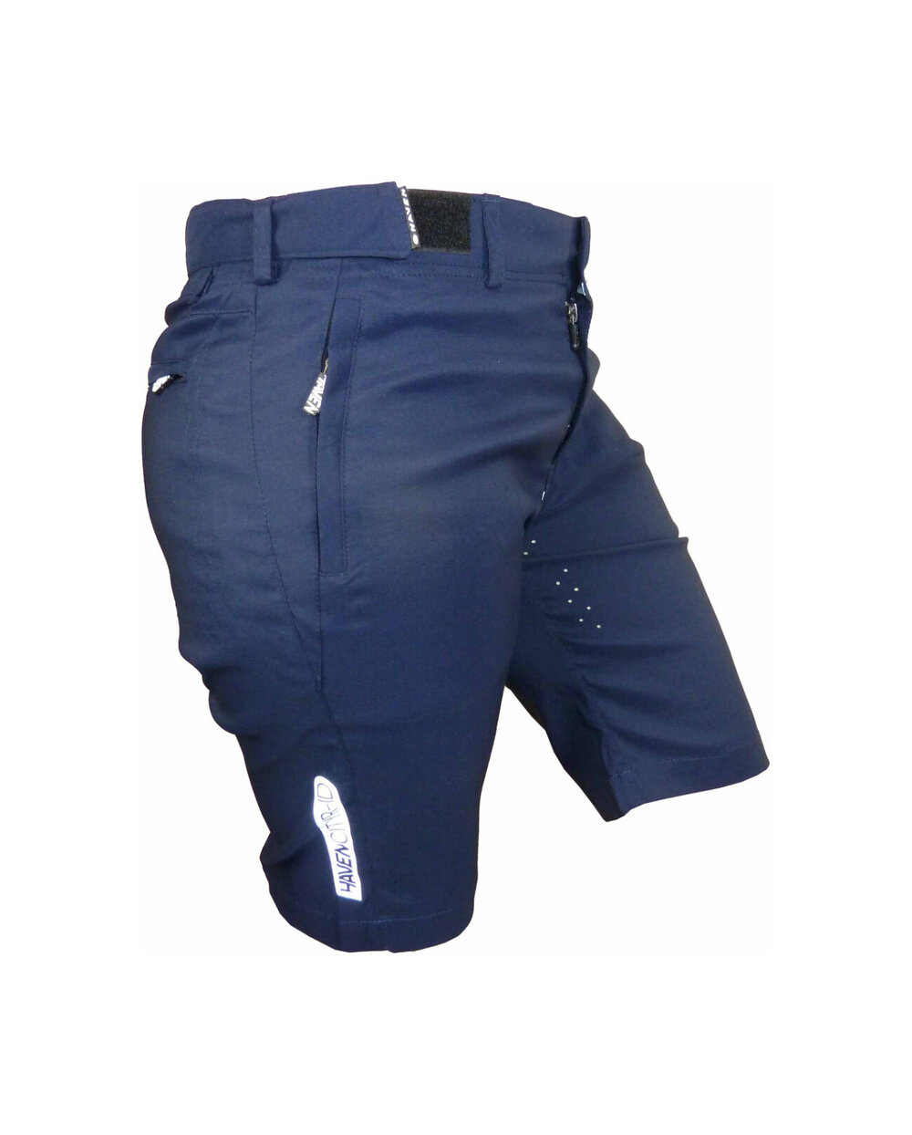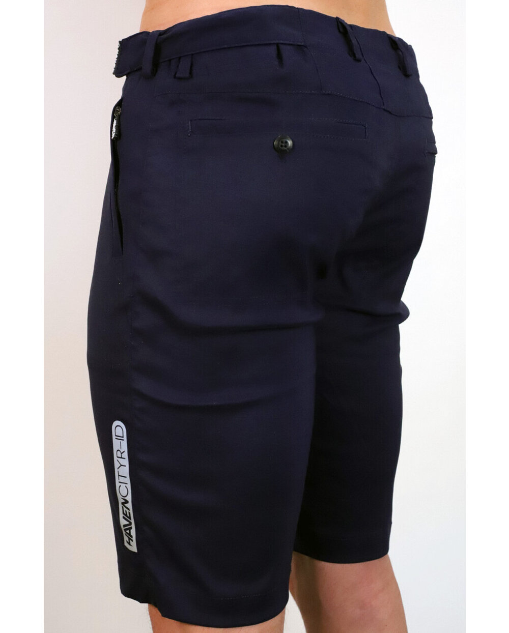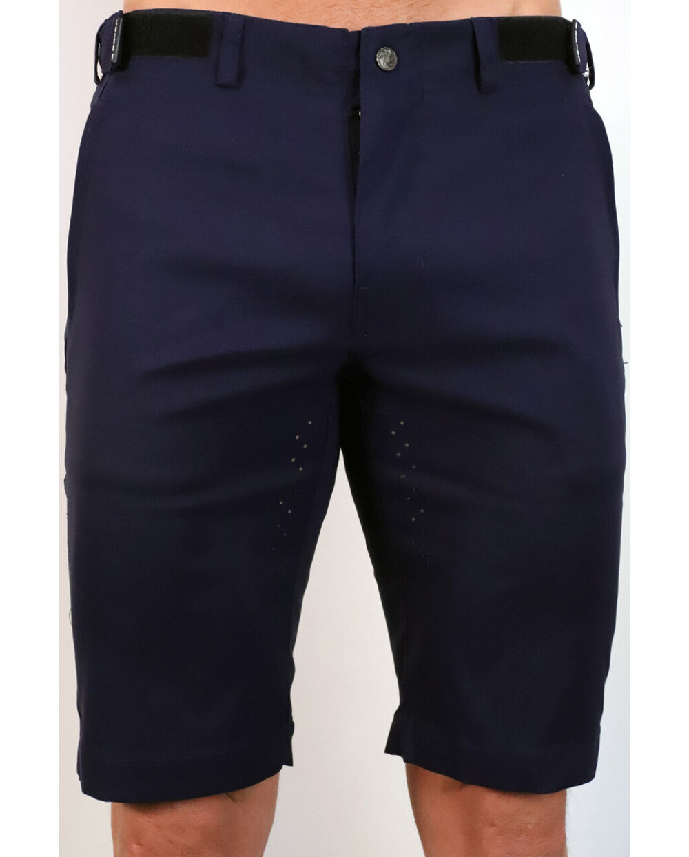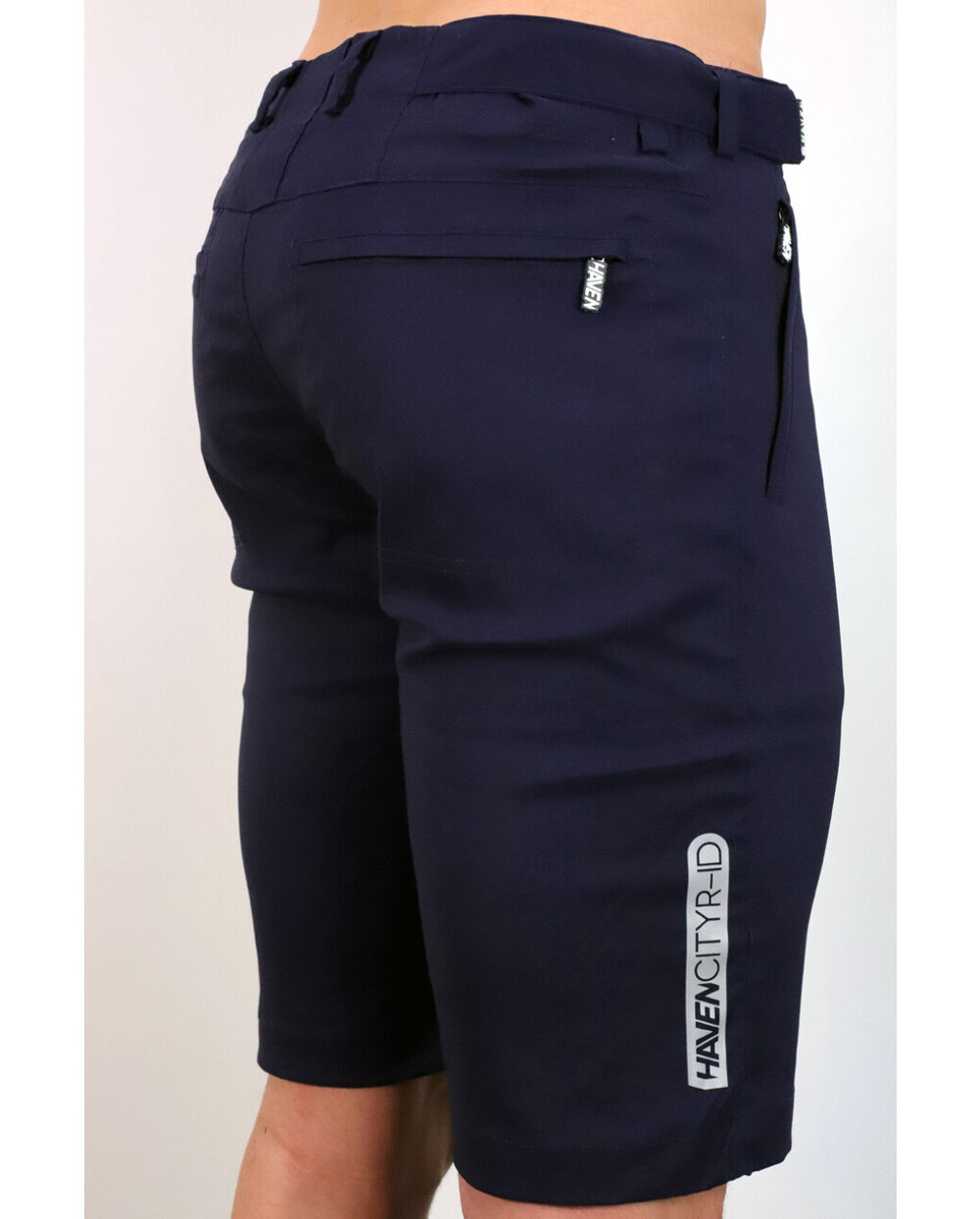 Kratke hlače iz posebnega materiala najlon-likra (odpornega na vodo in umazanijo) v temno modri mat barvi z odsevnimi elementi. Model, zasnovan za mesto, s čistim dizajnom, materialom in krojem. Dobavljeno brez notranje kolesarske podloge... to lahko dokupite