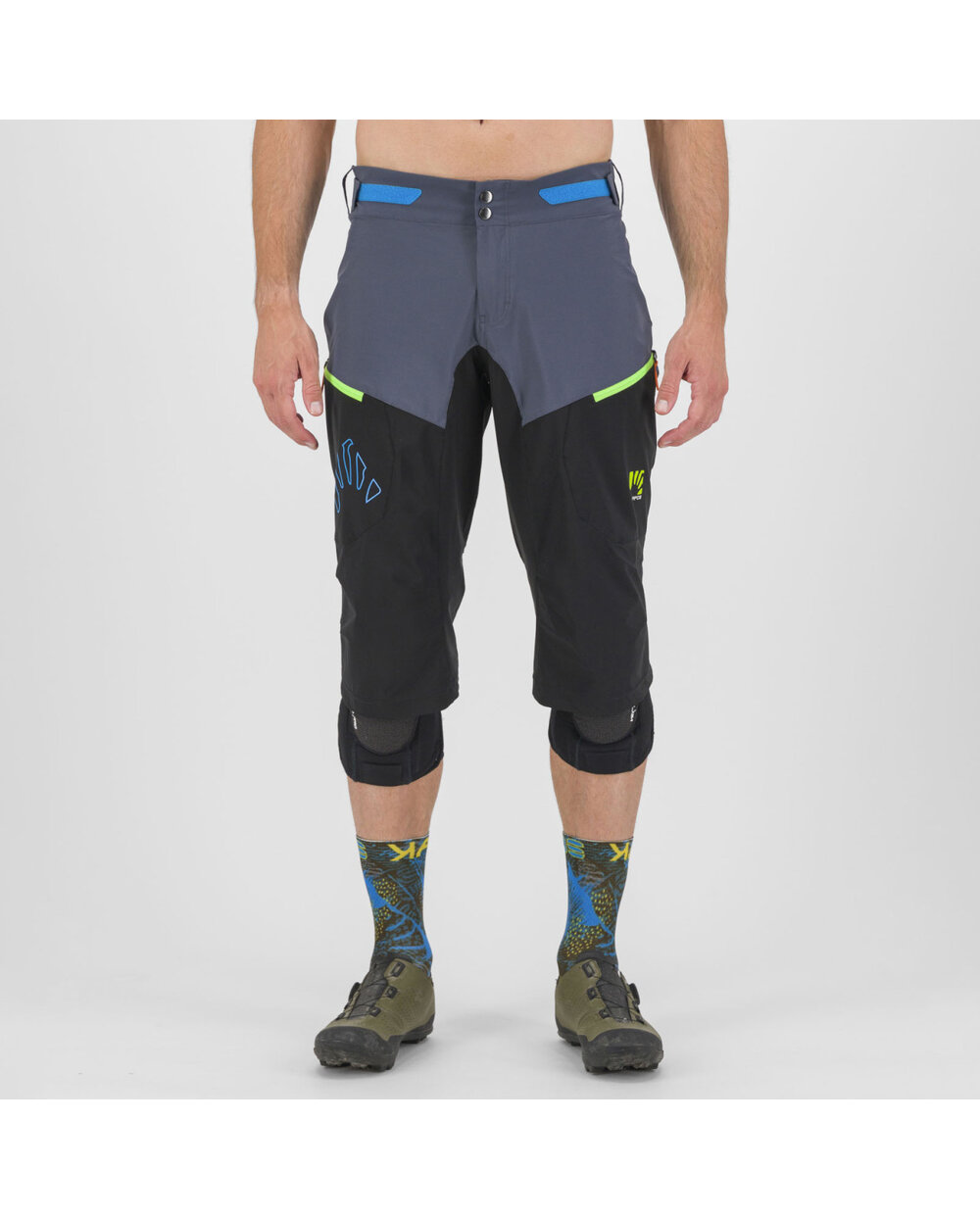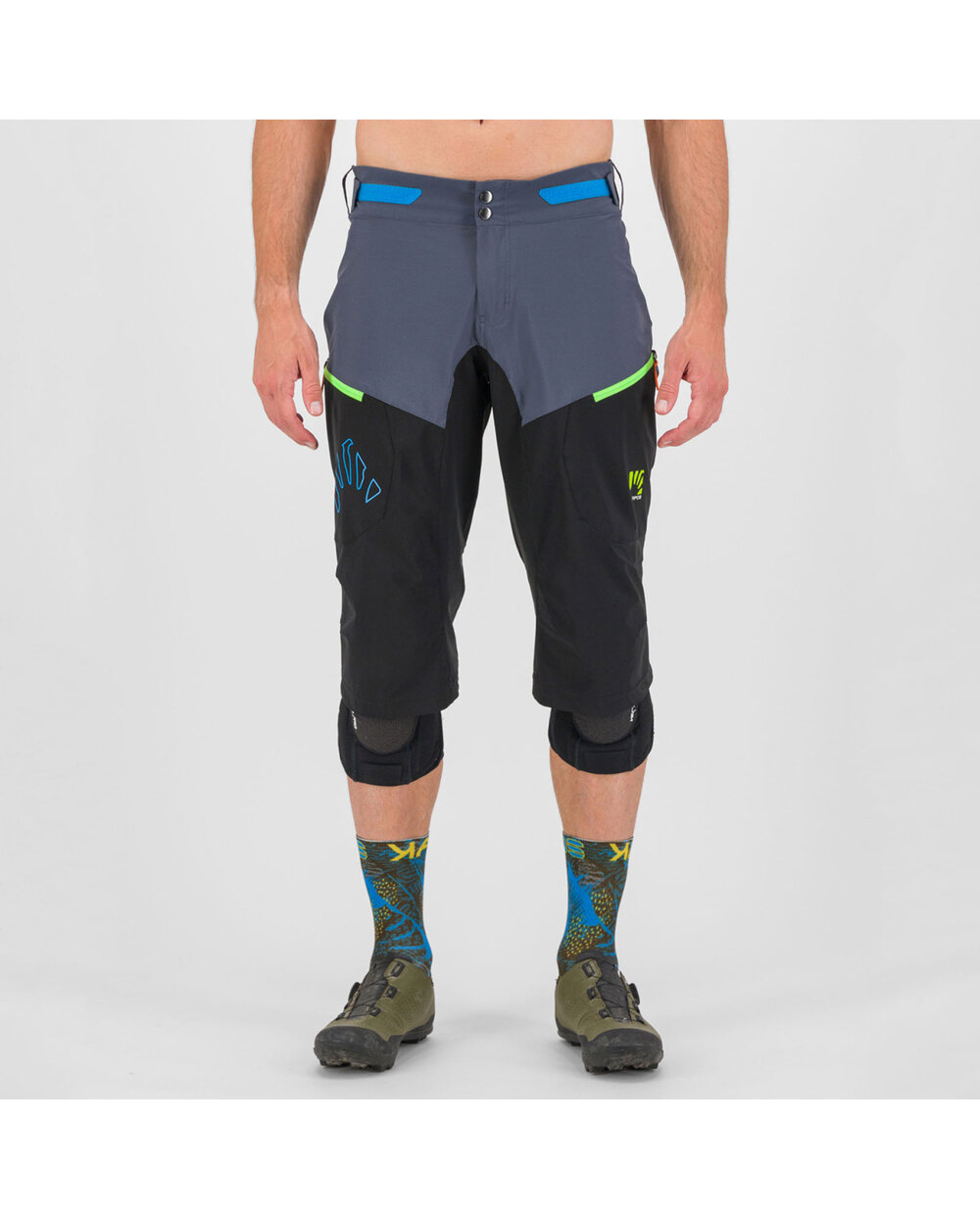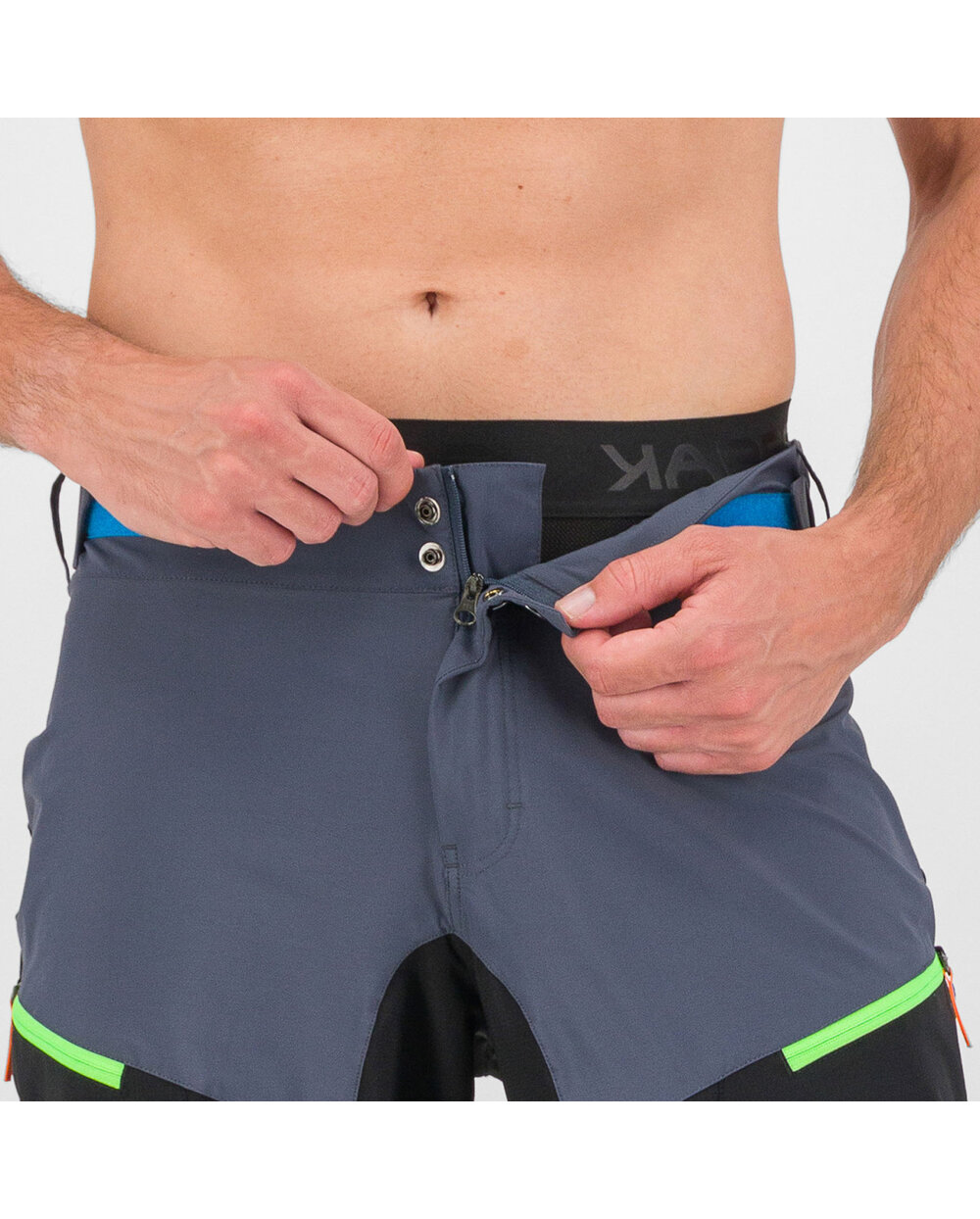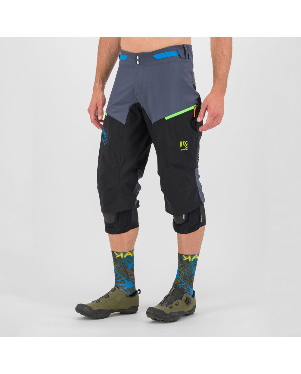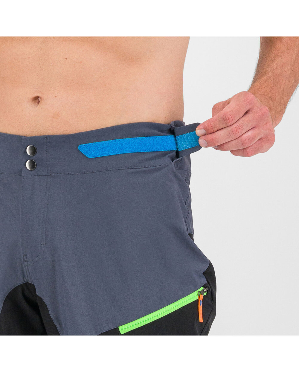 Za lažje šplezanje v pedálov, tudi iz putámi nazajánič, dolžina hlač sega tik pod úravnino kolen. Na sprednji strani sta dva žepa z zadrgo in mrežasta mreža, zato ju lahko uporabljate tudi kot prezračevalni odprtini. Vsestranske kratke hlače za poletne dejavnosti na prostem.