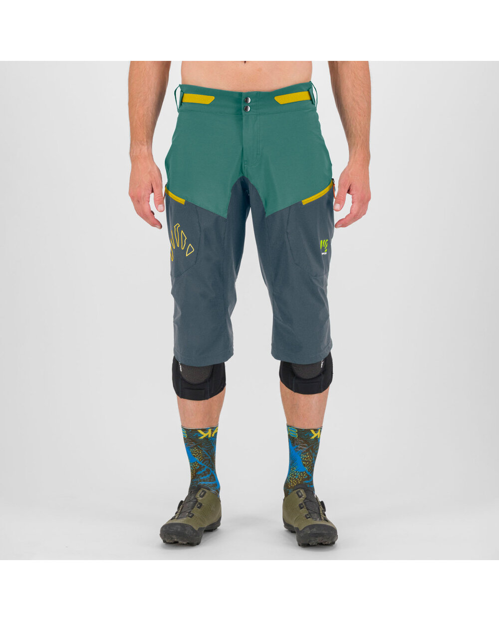 Za lažje šplezanje v pedálov, tudi iz putámi nazajánič, dolžina hlač sega tik pod úravnino kolen. Na sprednji strani sta dva žepa z zadrgo in mrežasta mreža, zato ju lahko uporabljate tudi kot prezračevalni odprtini. Vsestranske kratke hlače za poletne dejavnosti na prostem.