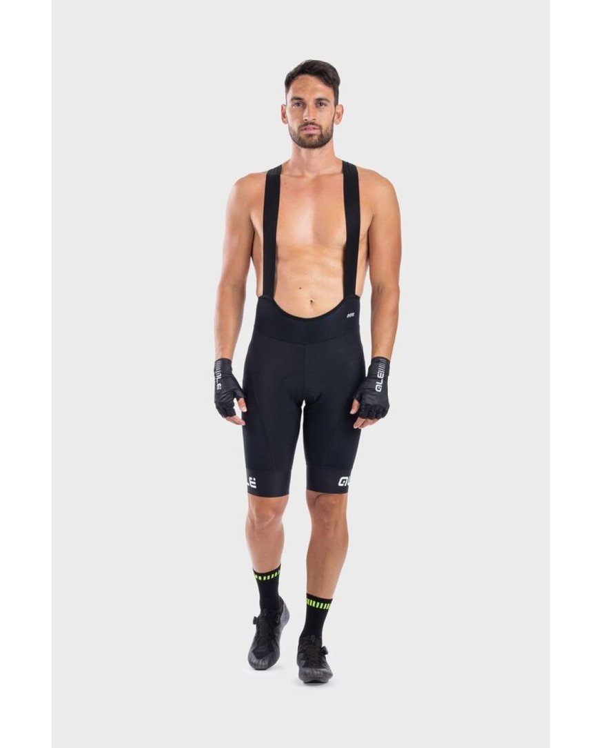 Kolesarske kratke hlače z naramnicami Alé R-EV1 AGONISTA PLUS črna/bela