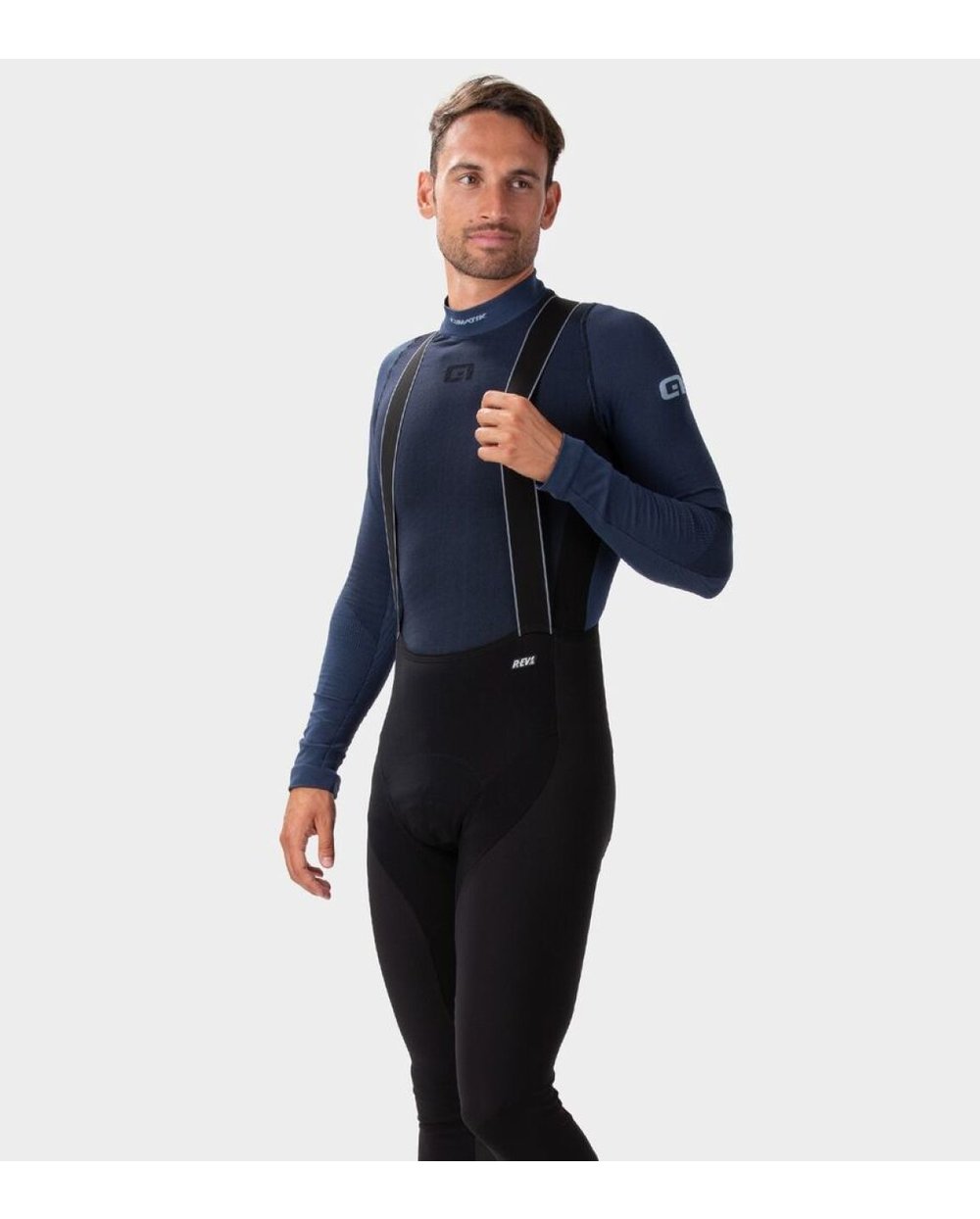 Moške zimske hlače Alé Clima Warm Plus iz posebne tkanine BeHOT DWR, ki je ustvarjena za hladno in mokro vreme. Vrhunske dirkaške hlače R-EV1 zagotavljajo najboljše funkcionalne lastnosti.