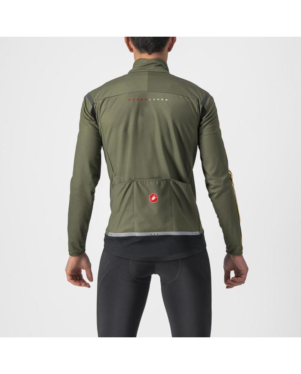 Izključna sprednja stran CASTELLI GORE-TEX INFINIUM™ WINDOSTOPPER® 205 Warm, je vodoodporna, na notranji strani pa ima mehak flis.