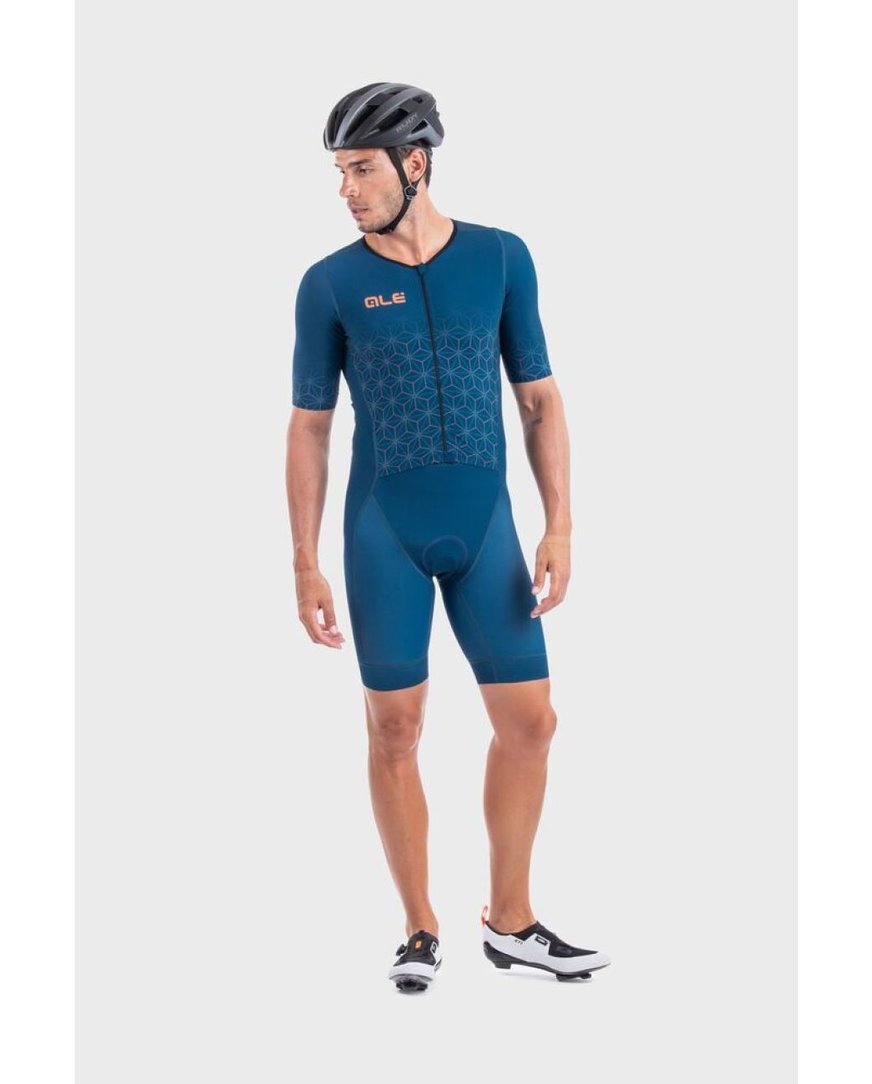 Triatlonska obleka, zasnovana neposredno za triatlonce Triatlonsko obleko s kratkimi rokavi Alé MAUI LONG TRI so oblikovali športniki za svoje posebne potrebe med dolgimi tekmami. Kombinezon zagotavlja res odlično zračenje zaradi možnosti popolnega odpiranja sprednjega dela, ki je delno všit kot ločen kos. Zadnji del je nato izdelan iz mrežaste tkanine Mesh Dragon, ki je zelo zračna. V zadnjih žepih lahko nato shranite energijske ploščice za kolesarski in tekaški del dirke.