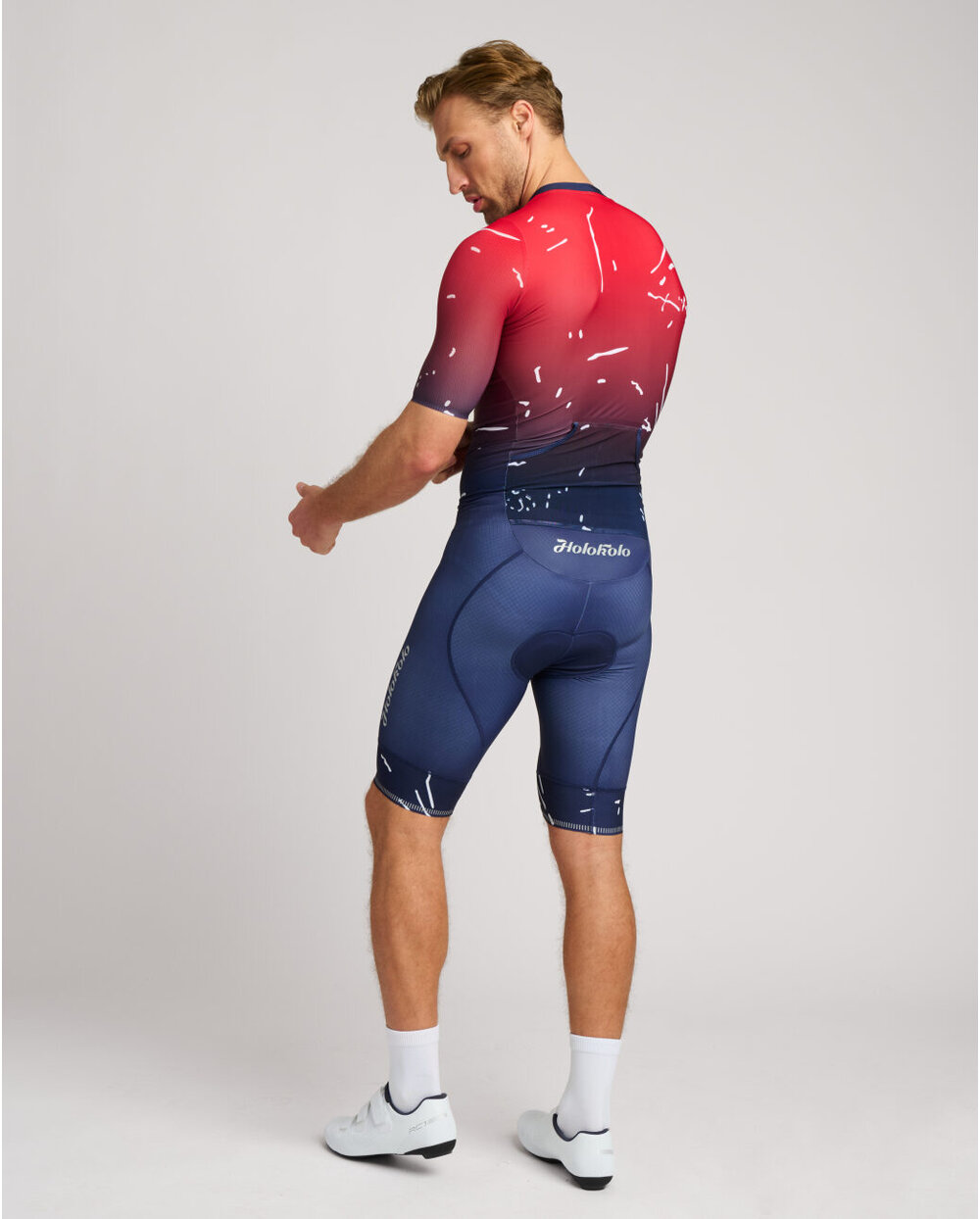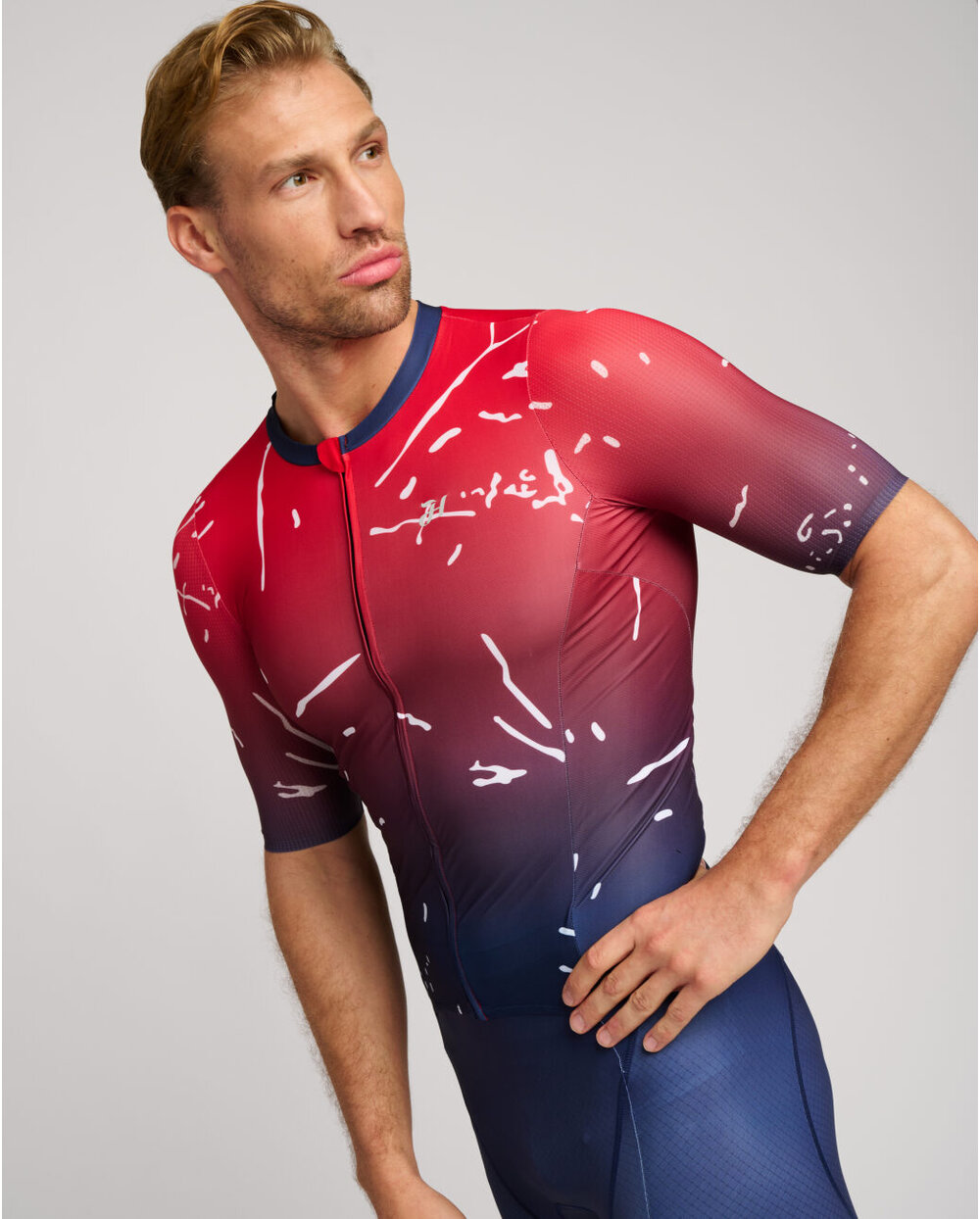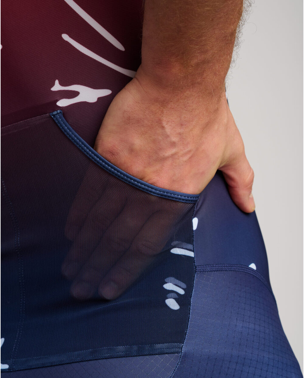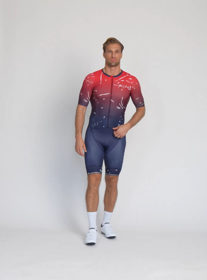 Maksimalno udobje: Elastična tkanina se popolnoma prilagaja vašemu telesu in omogoča svobodno gibanje brez omejitev med celotnim triatlonom.