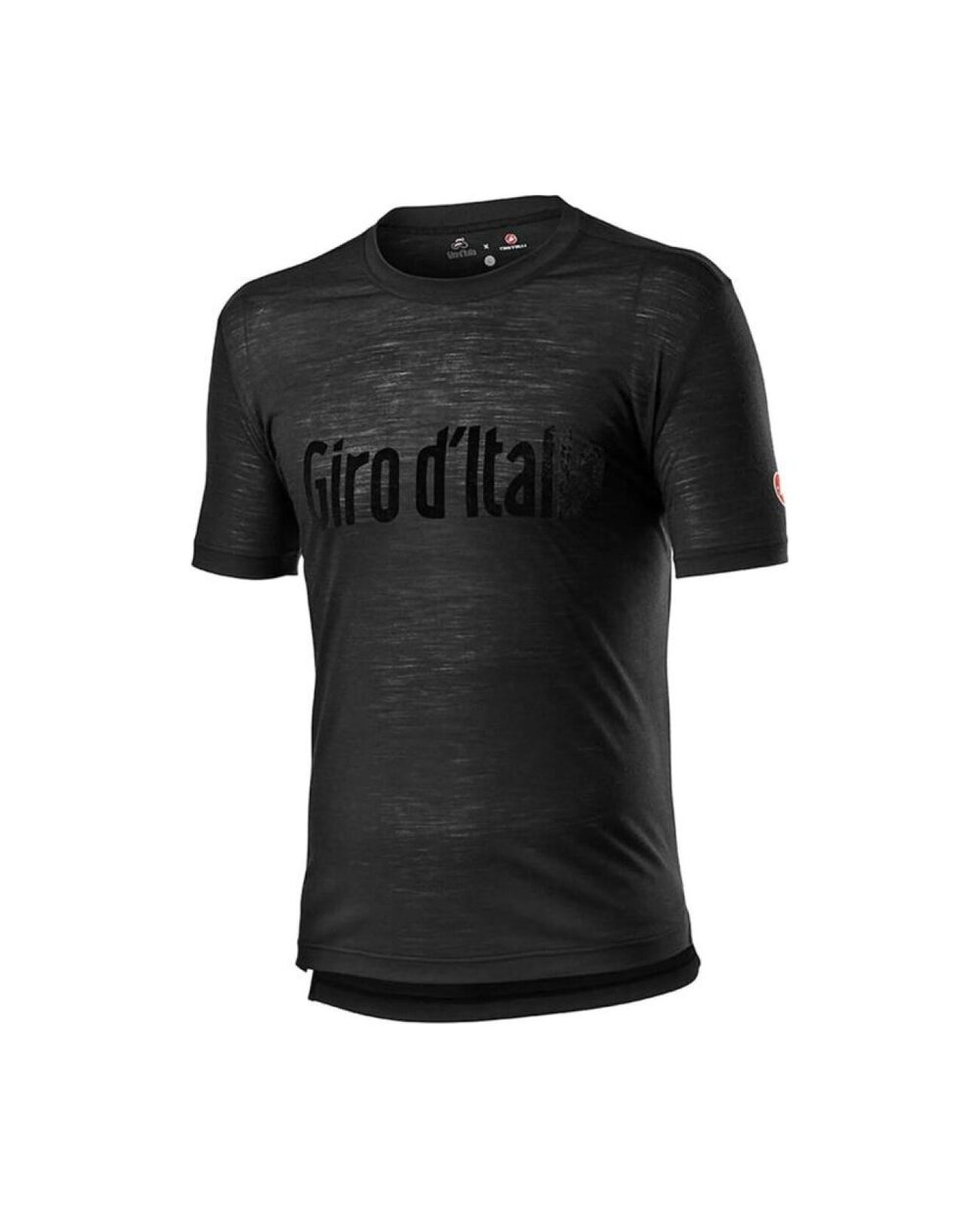 Črn logotip Giro d'Italia na prsih.