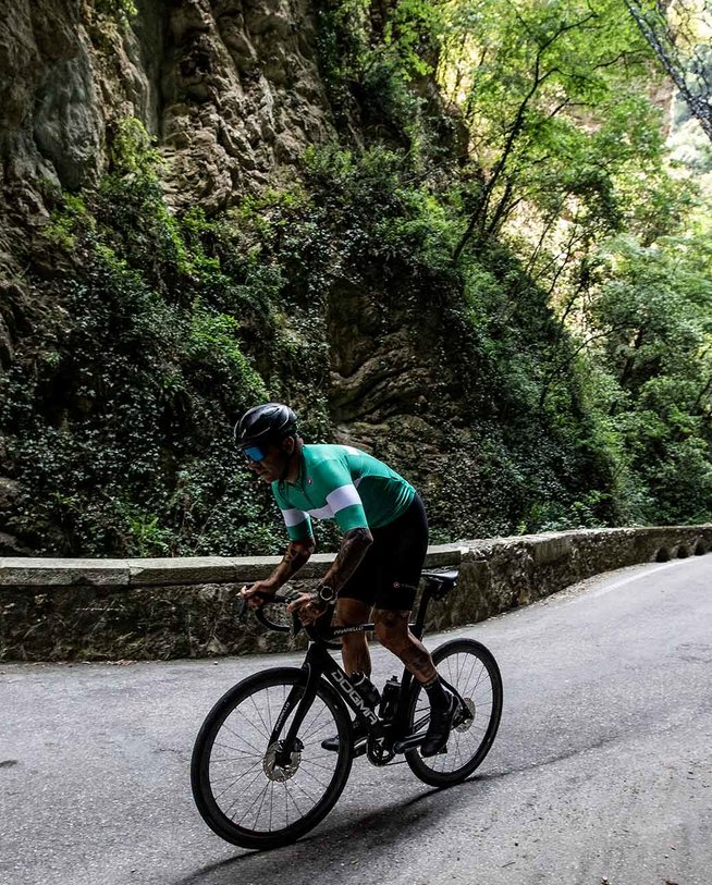 • MATERIAL: ProSecco Micromesh, KISS Air kolesarski vložek, Poliester, Velocity Rev 2, lycra