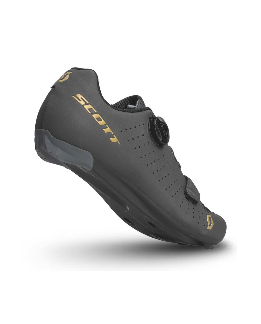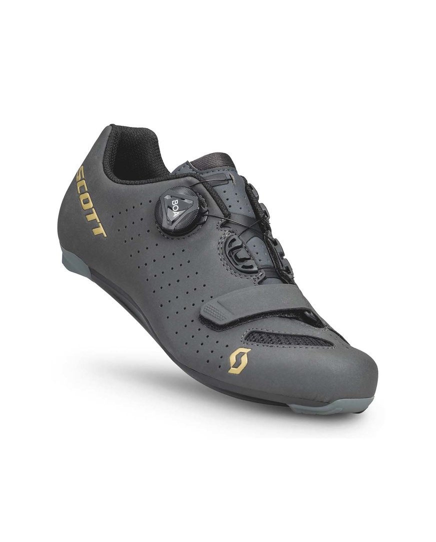 Scott Road Comp Boa® dokazuje, da odlično prilegajoči se čevlji za zmogljivost niso vedno predragi. Zgornji del s sistemom zapenjanja Boa® L6 se v kombinaciji s trakom za zapenjanje z velcro popolnoma prilagodi obliki vašega stopala. Čevelj je dovolj tog, da zadovolji instinkte zmogljivega kolesarja, hkrati pa je dovolj udoben za celodnevno vožnjo. Na podplatu boste poleg optimalne togosti sistema 6 cenili tudi večjo površino za prilagajanje ključavnic.