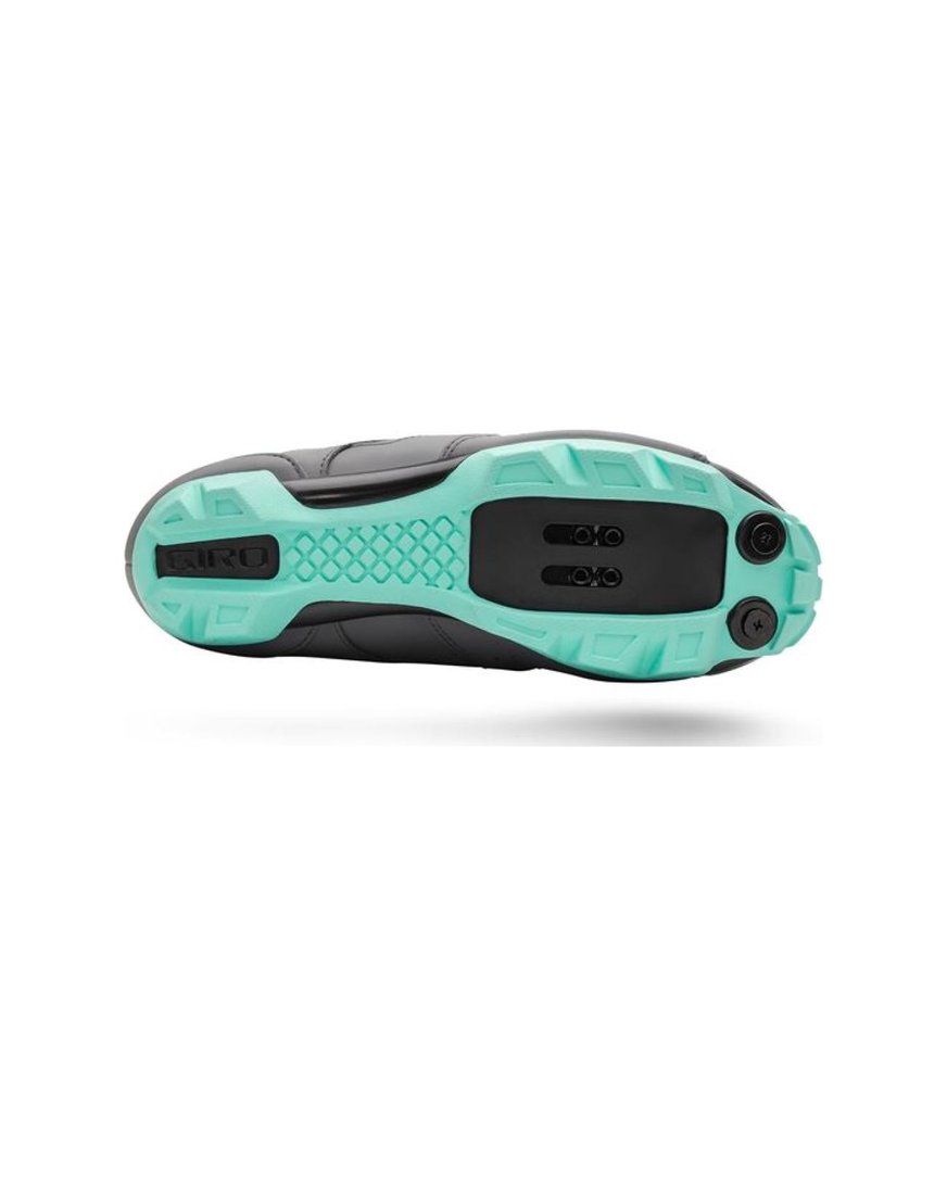 Ženski čevelj Cylinder II W ponuja kakovost in udobje, ki ju pričakujete od podjetja Giro. Sodobno zapenjanje združuje kolesce Boa L6 in trak z velcro. Je hitro in udobno. Obroček Boa L6 se zateguje v natančnih korakih po 1 mm, poleg tega pa ima funkcijo takojšnjega popolnega odpenjanja za enostavno in hitro snemanje. Dihanje je zagotovljeno z mrežastimi ploščami. Gumiran najlonski podplat prenaša moč na pedala in vas drži pokonci tudi na terenu, kjer morate sestopiti.