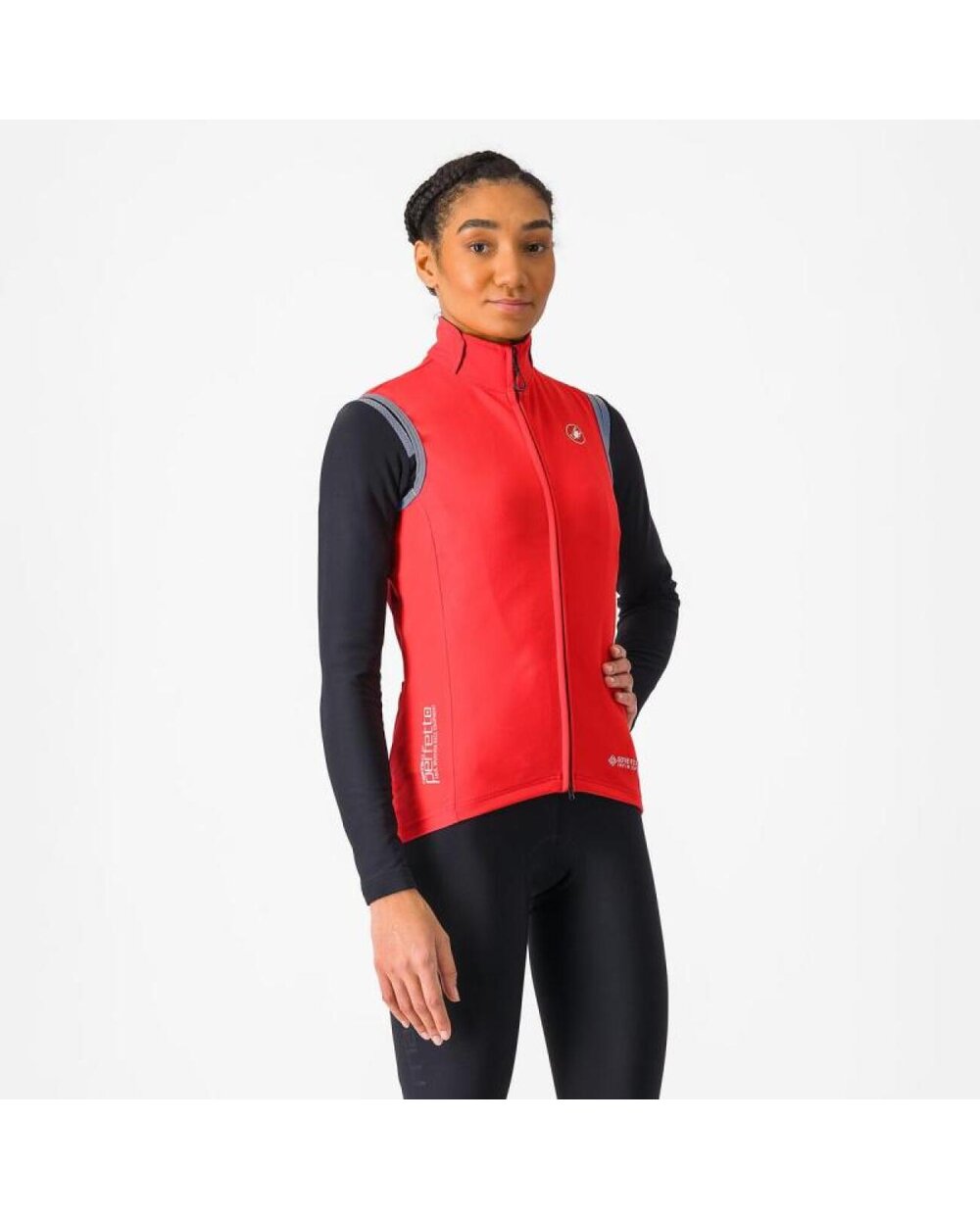 KAJ JE / FUNKCIJE IZDELKANarejen kot popoln telovnik. GORE-TEX INFINIUM™ WINDSTOPPER® z zaščito pred vetrom in vodo na sprednji strani in dihajočo tehnologijo nano odganjanja napak na hrbtni strani. Elastično prileganje in ga je mogoče po potrebi pospraviti v srednji žep. To je nepogrešljiv kos vaše kolesarske garderobe. Vrhunski tekmovalni ali vadbeni telovnik z zaščito pred vetrom na sprednji strani in zračnim hrbtom, ki odvaja vlago.GORE-TEX INFINIUM™ WINDSTOPPER® 203 lahka raztegljiva tkanina na sprednji strani. tkanina Nano Flex Light na hrbtu je raztegljiva in zračna z dobro zaščito pred vodo.dvosmerna zadrga YKK® Vislon® za enostavno prilagajanje zračenja na poti.3 Odsevne cevi na dnu žepov in okoli lukenj za roke.Barve: 085 svetlo črna, 048 siva, 081 hibiskus, 294 glineno siva, 857 oranžna, 363 zeleni čajVelikosti: XS - XLVlaga: 146 g. (S)Temperaturno območje: 10 - 18 ˚C Sestava materiala:Hlavnvrhnji zunanji material 100% poliester Glavni notranji material 92%poliester 8%elastanZadnji del, žep, stranice 78%poliester 22%elastanVnotranji ovratnik 90%poliester 10%elastan Telovnik Perfetto RoS 2 je naš poskus popolnega jopiča.Zaradi CASTELLIjeve ekskluzivne tkanine GORE-TEX INFINIUM™ WINDSTOPPER® na sprednji strani in raztegljivega tkanega materiala Nano Flex na hrbtni strani je topel, odporen na veter in hkrati diha. Odporna je na pljuske z mokrih cest ali spreminjajočih se vremenskih razmer. Je lahek in pakljiv, zato ga zlahka spravite v žep dresa. Ima tri prilagojene zadnje žepe in dvosmerno zadrgo YKK® Vislon®, ki jo lahko odprete tudi s spodnje strani in tako dostopate do opreme v žepih dresa. Zaradi odsevnih trakov na žepih ali pa na pazdušnih rokavih je vidna v 360°. Dres se prilega telesu in ima zelo udoben visok ovratnik, ki je idealen za hladnejše razmere.