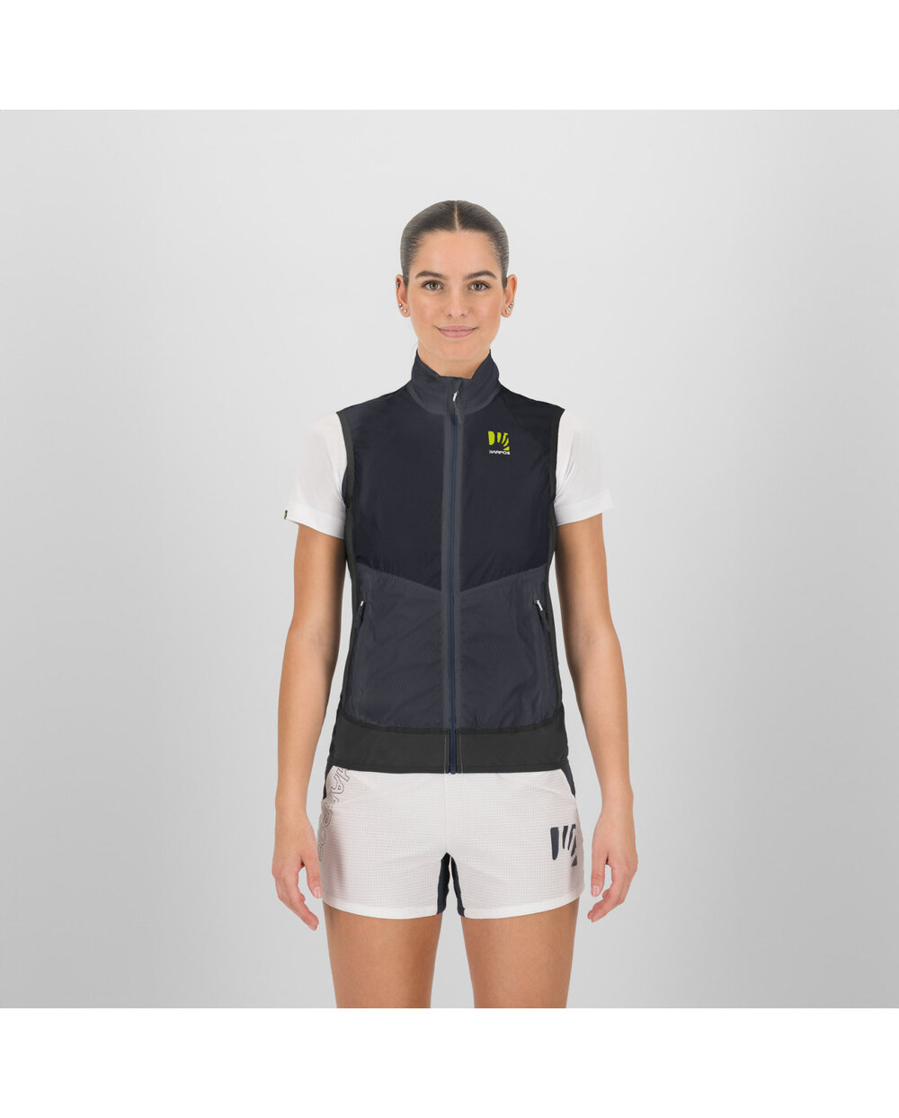 Ženskitehnični brezrokavnikKarpos Lavaredo je namenjen teku in ostalim aerobnim aktivnostim v hladnem vremenu. Kombinacija uporabljenih materialov zagotavlja zaščito pred vetrom, odlično zračnost in kompaktnost. Telovnik je opremljen z lastnim notranjim žepom, ki omogoča enostavno in hitro pakiranje.