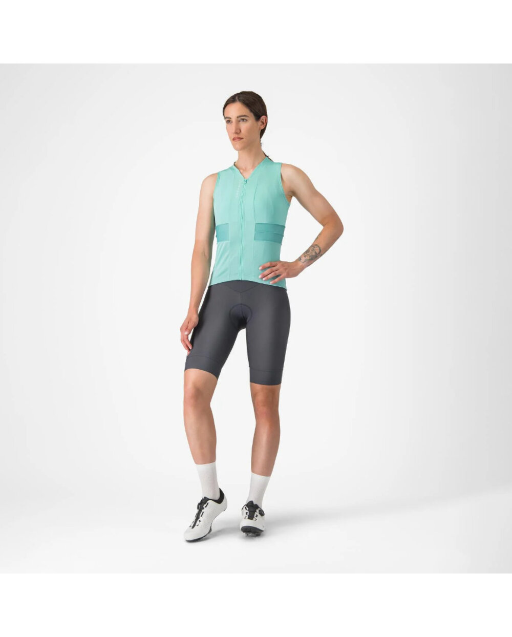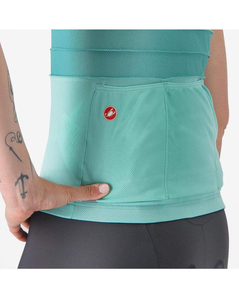 Naziv "Anima" v italijanščini pomeni duša in to je točno to, kar opisuje ta majica. Pomeni, da so majhne podrobnosti pravilne, kot so popolno prileganje, mehka, hitro sušeča in raztegljiva tkanina, lahko drsna zadrga YKK® in inovativna konstrukcija žepov CASTELLI. Stil je čist, podrobnosti pa izstopajo. Poleg nekaj kozmetičnih popravkov je največja sprememba v primerjavi s prejšnjo generacijo izboljšana tkanina ProSecco Velo Donna, ki je mehkejša in udobnejša. Gre za ekskluzivno tkanino podjetja CASTELLI, zaradi katere ne boste verjeli, da je model Anima osnovni dres.
