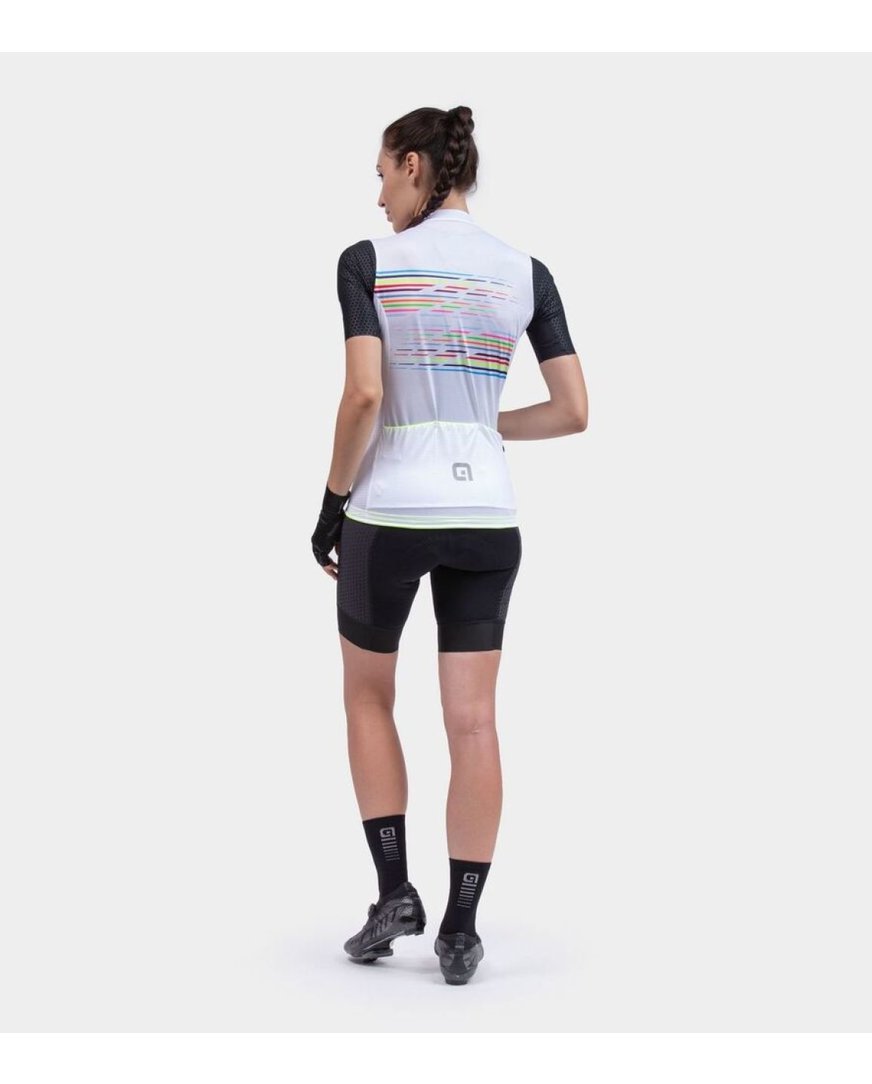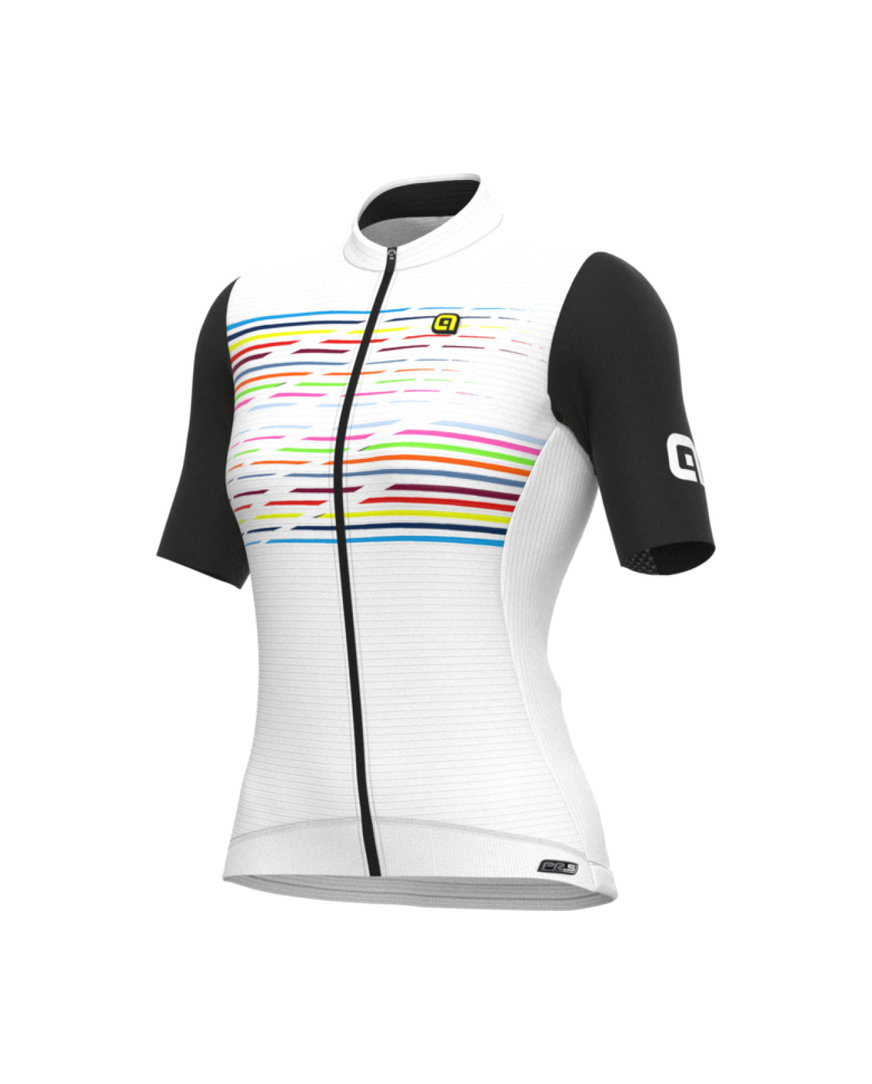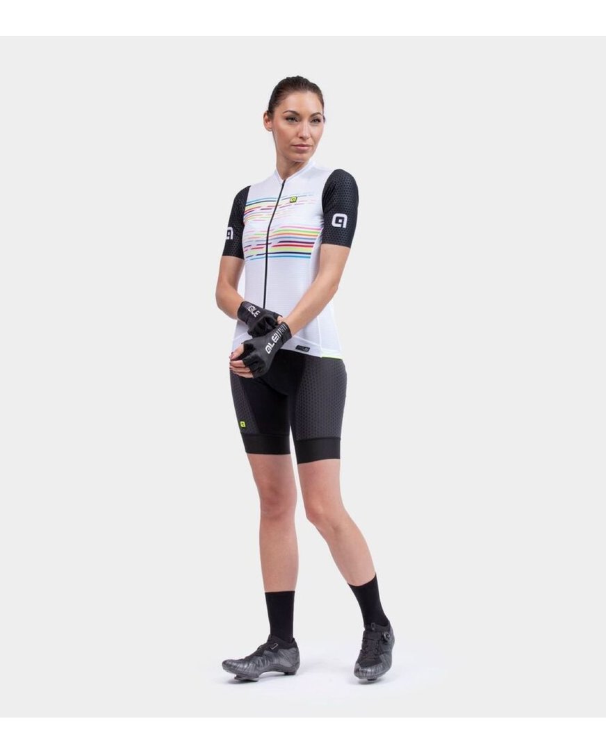 Ženski dres LOGO je nastal na podlagi naših raziskav o tem, kako najbolje združiti udobje z visoko zmogljivostjo. Vrhunska majica PR-S je prva izbira za uporabo na dirkah. Te tkanine in kroj uporabljajo tudi kolesarske ekipe, ki dirkajo v barvah Alé. Zaradi izjemno lahkih materialov z antistatično obdelavo je to odlična izbira za zahtevne in dolge dirke.