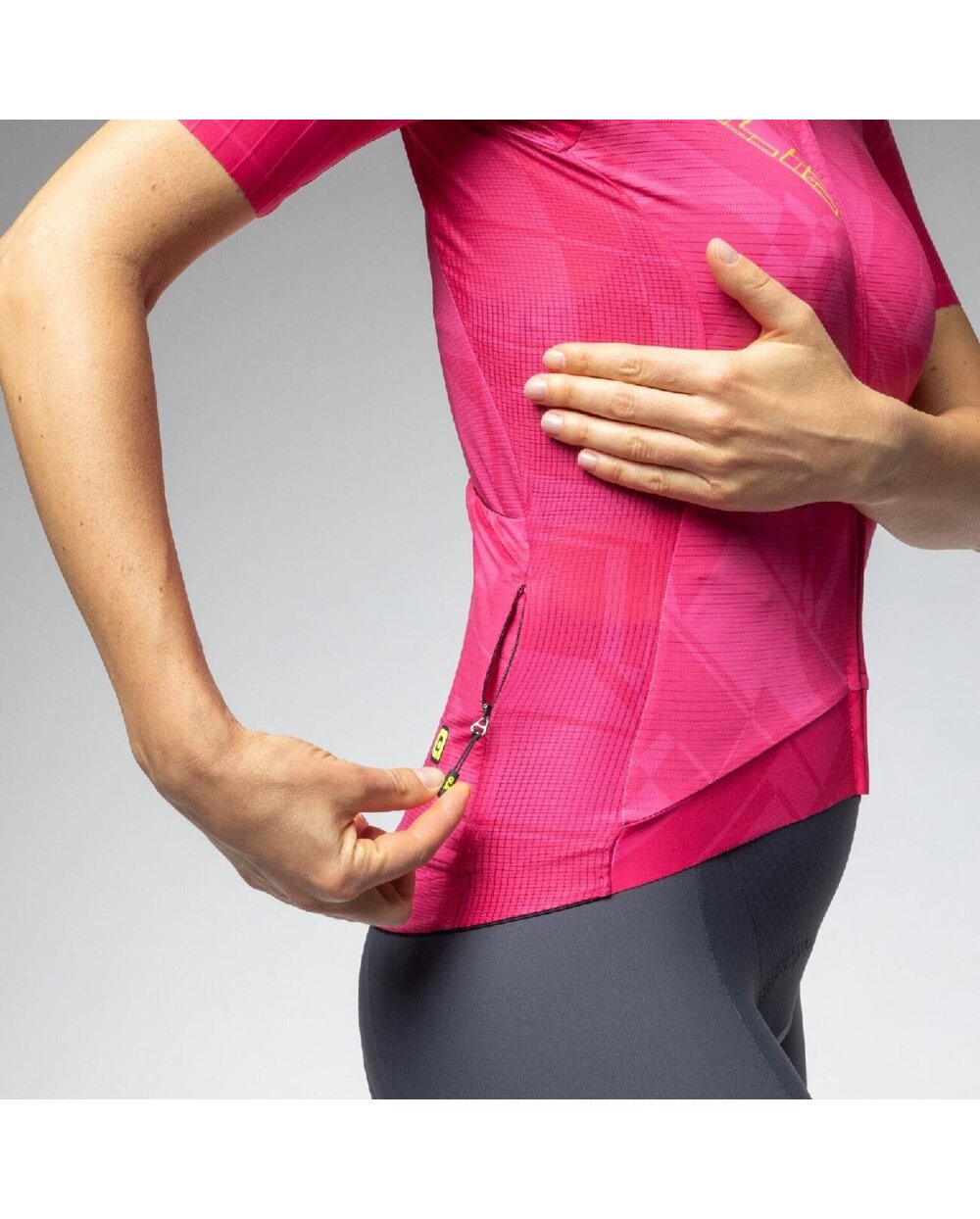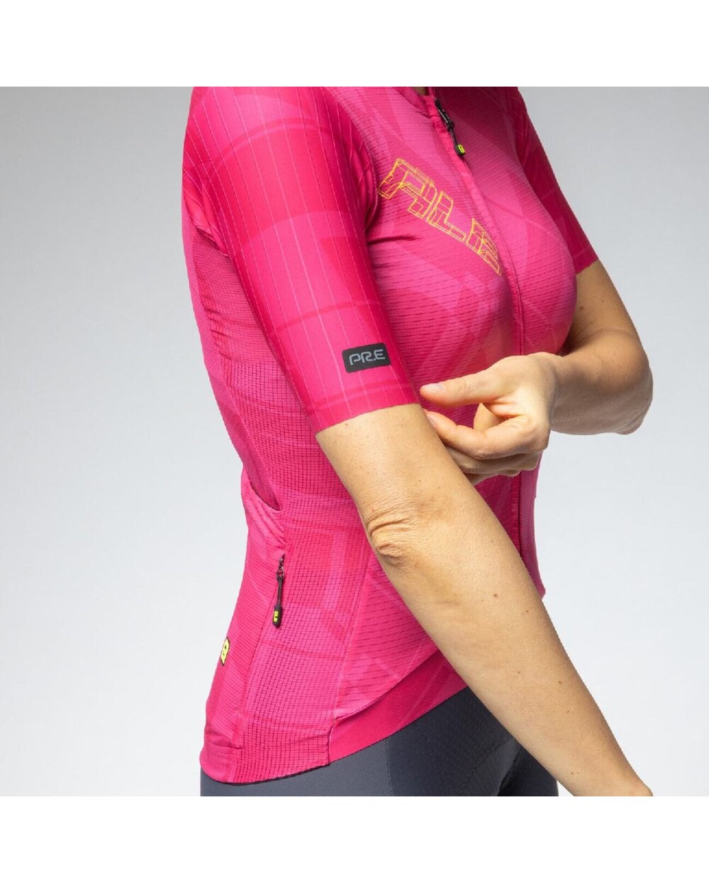 Vsak del majice PR-E Schema je bil zasnovan tako, da kar najbolje izkoristi vsako uporabljeno tkanino. Narejen je iz tkanine Rap Dry Carbon s prepletenimi ogljikovimi nitmi, ultralahke tkanine Micro Aero za kroženje zraka in mreže Piuma pod pazduho za zračnost, kar zagotavlja vrhunsko udobje pri teži le 100 gramov. Sistem S-Stability v spodnjem sprednjem delu dresa zagotavlja optimalno prileganje. Našiti rokavi z nepodloženim krojem.