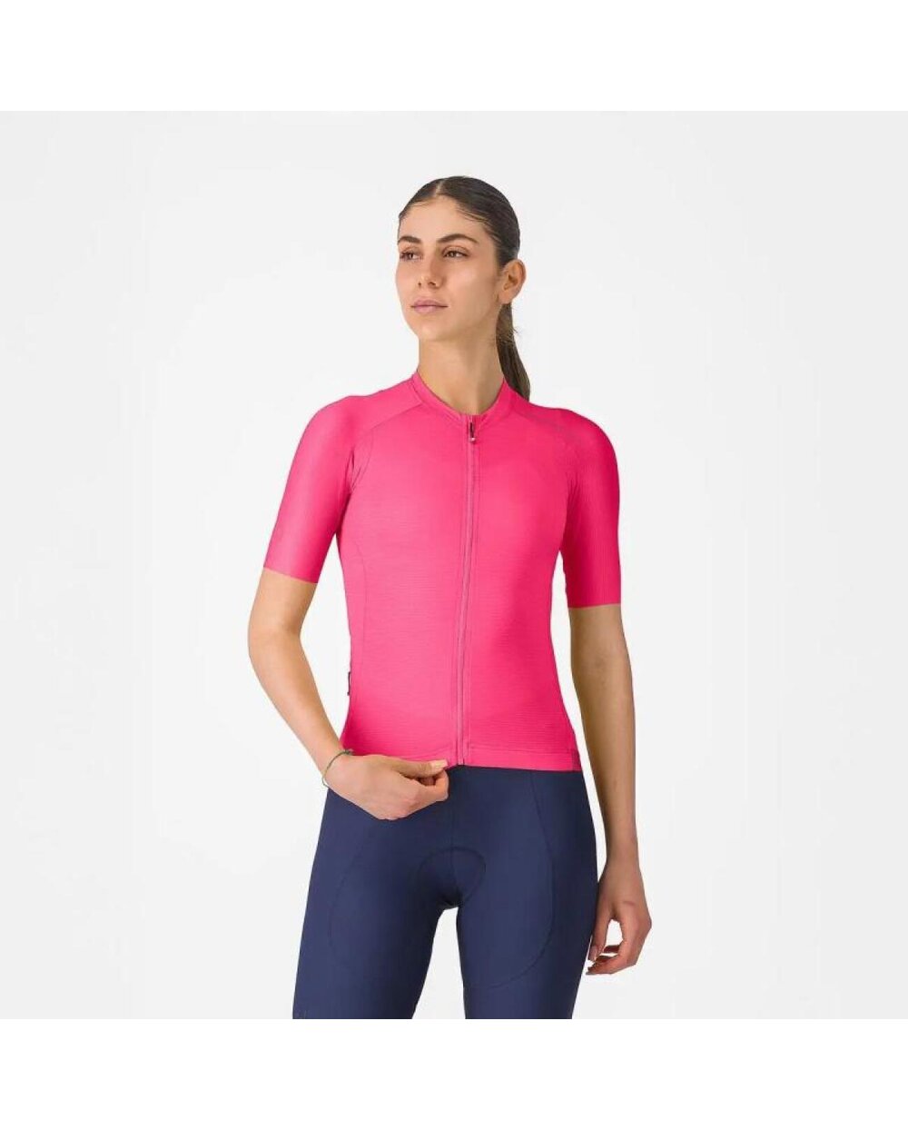 AirO Stretch material, razvit v CASTELLIju za zagotavljanje zračnosti, udobja in popolnega prileganja Tkanina je prilagojena za zračnost in aerodinamičnost Udobni rokavi z zaključkom brez šivanja 3 zadnji žepi s četrtim žepom za dragocenosti z zadrgo YKK® po celotni dolžini Vislon® zadrga, z zanko za lažjo uporabo Elastičen pas s silikonom drži dres na mestu Odsevni trak za boljšo vidljivost Zaščitni faktor UPF 30 Temperaturno območje: 18-35°C Teža: (S) 116gr Prileganje: prilagodljiv