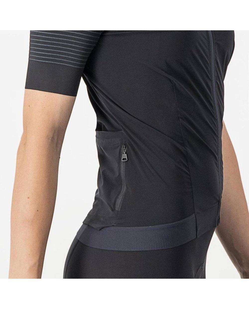 Izraz pove vse. Majica Premio je narejena za največje udobje in zmogljivost. Tehnologijo in material, ki sta uporabljena pri kratkih hlačah Premio, smo prilagodili majici. Dve ločeni raztegljivi tkanini ponujata številne prednosti: tesno prileganje, odlično odvajanje vlage, maksimalno aerodinamiko, majhno težo, vzdržljivost, čudovito gladko izdelavo in je mehka na otip. Rokavi imajo narebreno konstrukcijo kot kratke hlače, da se popolnoma ujemajo in prilegajo ravno prav, vendar ne stiskajo preveč. Reciklirana poliestrska tkanina trupa je lahka, mehka in raztegljiva, zato se odlično prilega telesu. Poleg tega odlično odvaja znoj, ko je zunaj vroče. Da bi bila majica popolna, smo bili pozorni na podrobnosti, kot sta zadrga in elastično zapiranje v pasu. Ko smo predstavili kratke hlače Premio Black, so vsi vprašali: "Kaj bom nosil z njimi?" Tukaj je majica, ki se odlično ujema z njimi - po slogu, udobju in zmogljivosti.